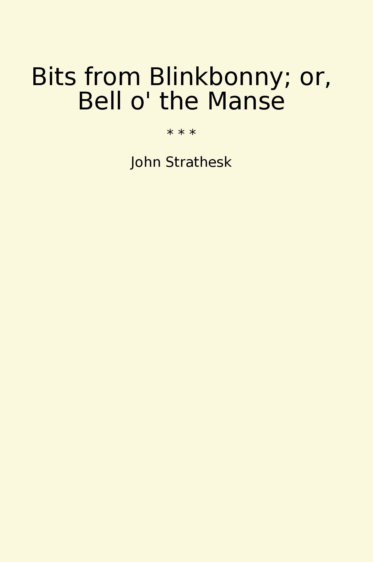 Bits from Blinkbonny; or, Bell o' the Manse is a classic book by John Strathesk that offers a charming portrayal of village life in Scotland during the 19th century. The book brings to life the characters and events of Blinkbonny, a fictional village that closely reflects the author's own experiences growing up in rural Scotland. The main character, Bell o' the Manse, is a beloved figure in the village, known for her kindness, wisdom, and strong Christian faith. Through a series of vignettes and anecdotes, the book explores various aspects of village life, including important events such as weddings, funerals, and church meetings, as well as the day-to-day interactions and challenges faced by its residents. Strathesk's writing style is warm and humorous, imbuing the stories with a sense of nostalgia and capturing the unique charm of a bygone era.Bits from Blinkbonny; or, Bell o' the Manse offers readers a delightful and heartwarming glimpse into a simpler time, reminding us of the power of community, faith, and the small, everyday moments that shape our lives.