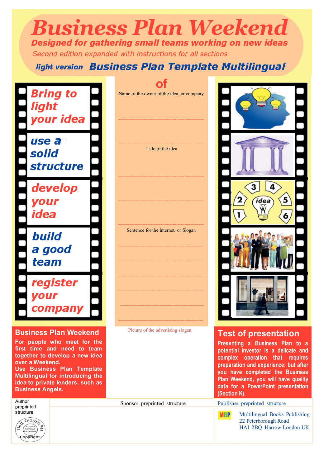 If you have to create a start-up, and you want to involve other people in your project, then this is the ideal product for you. This business plan weekend helps you to build and develop seven important elements of the complete business plan template, each of which is covered in a separate section and can be entrusted to a separate person for development. Sharing the idea with other people from the very beginning is certainly a source of risk, but it can also be a guarantee of success. In order to reduce the risks and increase the chances of success, it is absolutely necessary to have the Confidentiality Agreement of Section C signed not only by the potential investors but also by the members of the team to be set up. This implies that there is an idea owner who is recognised by all, and that the efforts of all participants are concentrated on this idea. The easiest way to achieve this is certainly to prepare the basic guiding elements, i.e. a Business Plan Idea, to be submitted to the other participants. But be careful not to fall into the error of discussing these elements beforehand. The owner must simply say that the discussion will take place on all the elements, including those, with the participants who have joined, each of whom will be entrusted with the development of one or more topics. This way of proceeding stems from the experience of the author's participation in "Startup Weekend", a competition between ideas organised in more than 1,000 cities around the world, in which more than 100,000 aspiring entrepreneurs have participated so far. Of course, this Business Plan is valid even if you do not participate in Startup Weekend, whenever you need to form a team and / or develop an idea in a limited time. For a first presentation of the idea to a potential funder, instructions with a practical example have been prepared in Section K.
