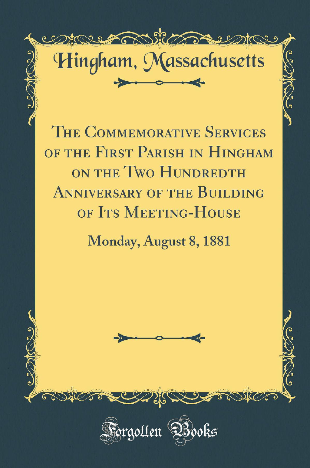 The digital edition of all books may be viewed on our website before purchase. Excerpt from The Commemorative Services of the First Parish in Hingham on the Two Hundredth Anniversary of the Building of Its Meeting-House: Monday, August 8, 1881 (Classic Reprint)