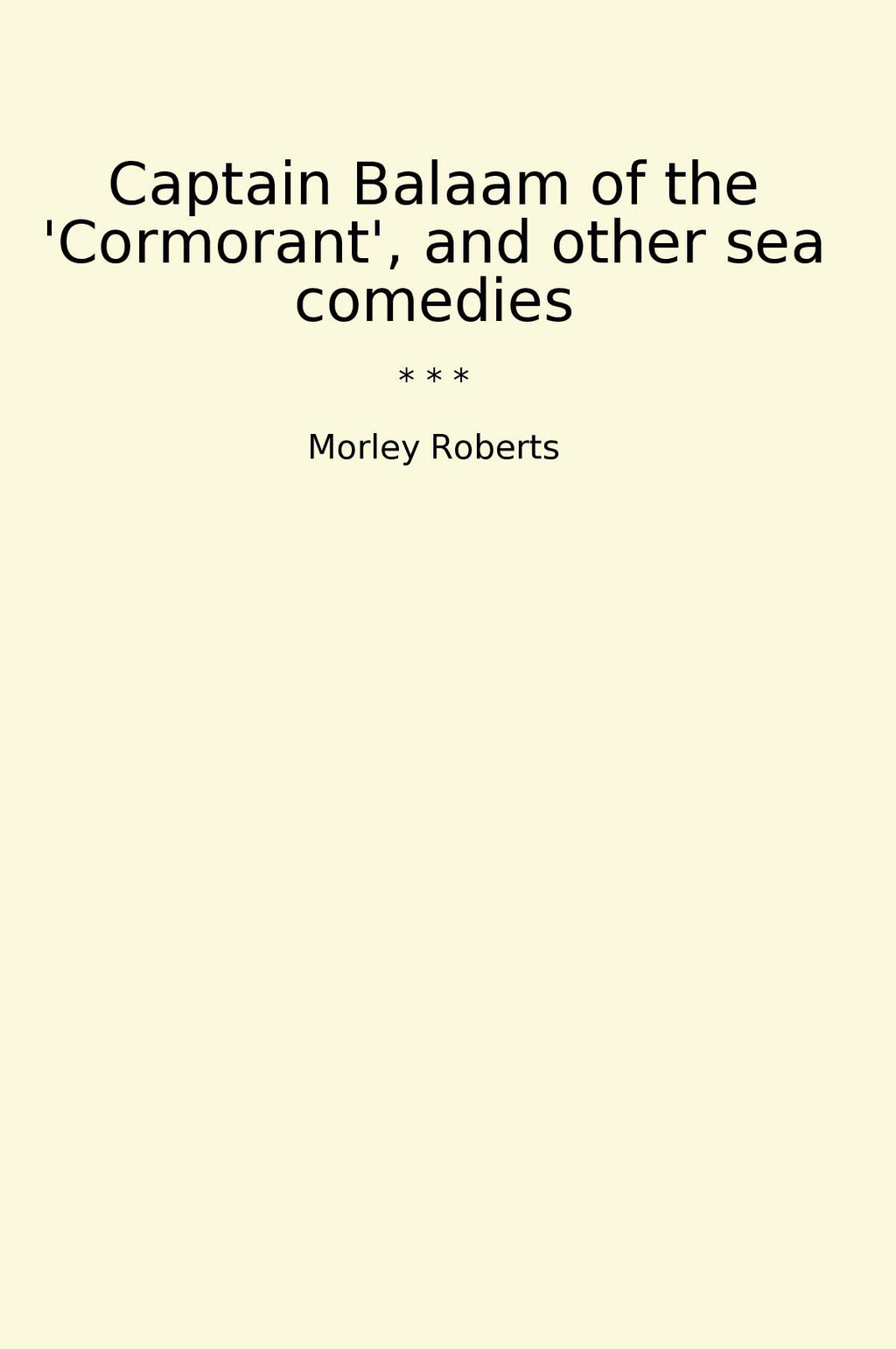 Captain Balaam of the 'Cormorant', and other sea comedies is a collection of short stories written by Morley Roberts. It was first published in 1898 and is considered a classic in maritime literature. The book is a compilation of humorous tales set at sea, with Captain Balaam as the central character.