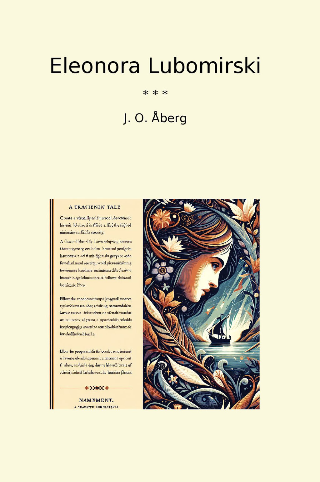 Eleonora Lubomirski on J. O. Åbergin klassinen kirja, joka kuvaa kaunista ja elämänmakuista tarinaa rakkaudesta, menetyksestä ja rohkeudesta. Tarina seuraa nuorta Eleonora Lubomirskia, joka joutuu kohtaamaan monia vaikeuksia ja vastoinkäymisiä elämänsä aikana, mutta säilyttää silti vahvan ja voimakkaan luonteensa. Kirja kuvaa taidokkaasti ajankuvaa ja yhteiskunnan paineita, mutta keskittyy ennen kaikkea ihmisten välisten suhteiden monimutkaisuuteen ja syvyyteen. Åbergin herkkä ja taitava kynä luo lukijalle mielikuvituksellisen maailman, joka tempaa mukaansa ja jättää jäljen sydämeen pitkäksi aikaa. Eleonora Lubomirski on ehdottomasti lukemisen arvoinen teos kaikille, jotka rakastavat syvällisiä ja tunteita herättäviä tarinoita.