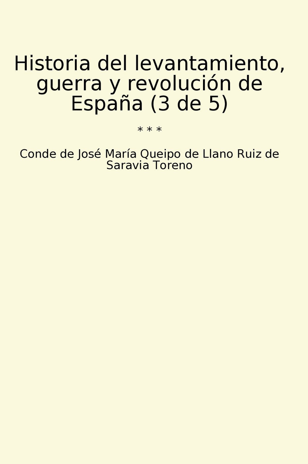 Historia del levantamiento, guerra y revolución de España (3 de 5) es el tercer volumen de la serie escrita por el Conde de Toreno sobre la historia de España durante la Guerra de Independencia y la Guerra Civil. En esta parte de la obra, el autor continúa analizando los eventos que llevaron a la guerra y ofrece una visión detallada de las batallas y estrategias militares.