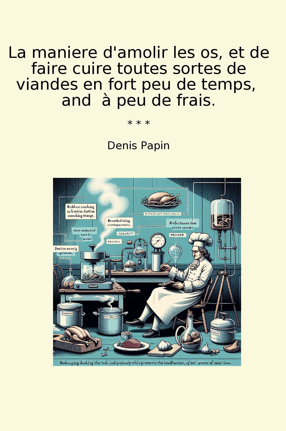 « La manière d'amolir les os, et de faire cuire toutes sortes de viandes en fort peu de temps, et à peu de frais » est un ouvrage classique de Denis Papin, une figure emblématique des sciences culinaires au XVIIe siècle. Ce livre propose des techniques innovantes pour optimiser la cuisson des aliments, en mettant en avant l'utilisation de la vapeur, une méthode révolutionnaire à l'époque. Papin y explique comment réduire le temps de cuisson tout en préservant la tendreté et les saveurs des viandes, en introduisant l'idée de l’autocuiseur. L’ouvrage se démarque par sa clarté et sa praticité, offrant des conseils accessibles à tout cuisinier. Papin, en vrai précurseur, nous invite à explorer de nouvelles méthodes de préparation culinaire, marquant ainsi un tournant dans l’art de la cuisine. Ce livre reste une référence pour quiconque s'intéresse aux techniques de cuisson efficaces et économiques.