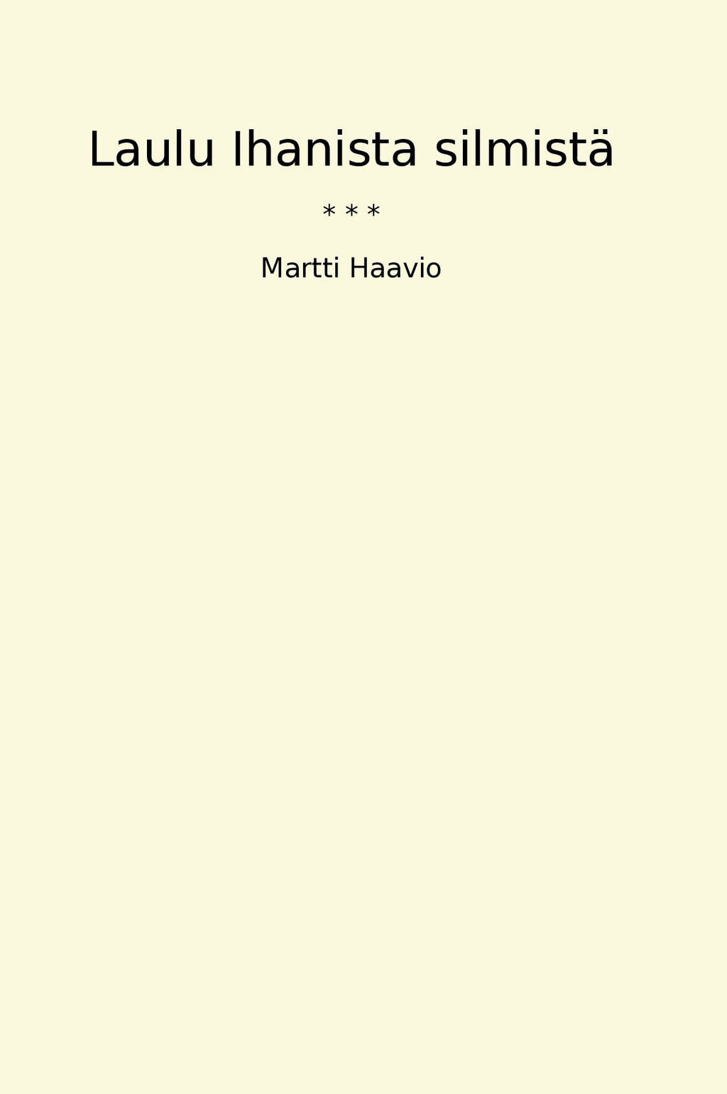 Laulu Ihanista silmistä, kirjailija Martti Haavion runokokoelma vuodelta 1940, on klassinen teos suomalaisessa kirjallisuudessa. Haavio tunnetaan erityisesti runoilijana, ja tämä kokoelma on yksi hänen merkittävimmistä teoksistaan. Runot tulvivat kauneutta, rakkautta ja elämän mysteereitä.