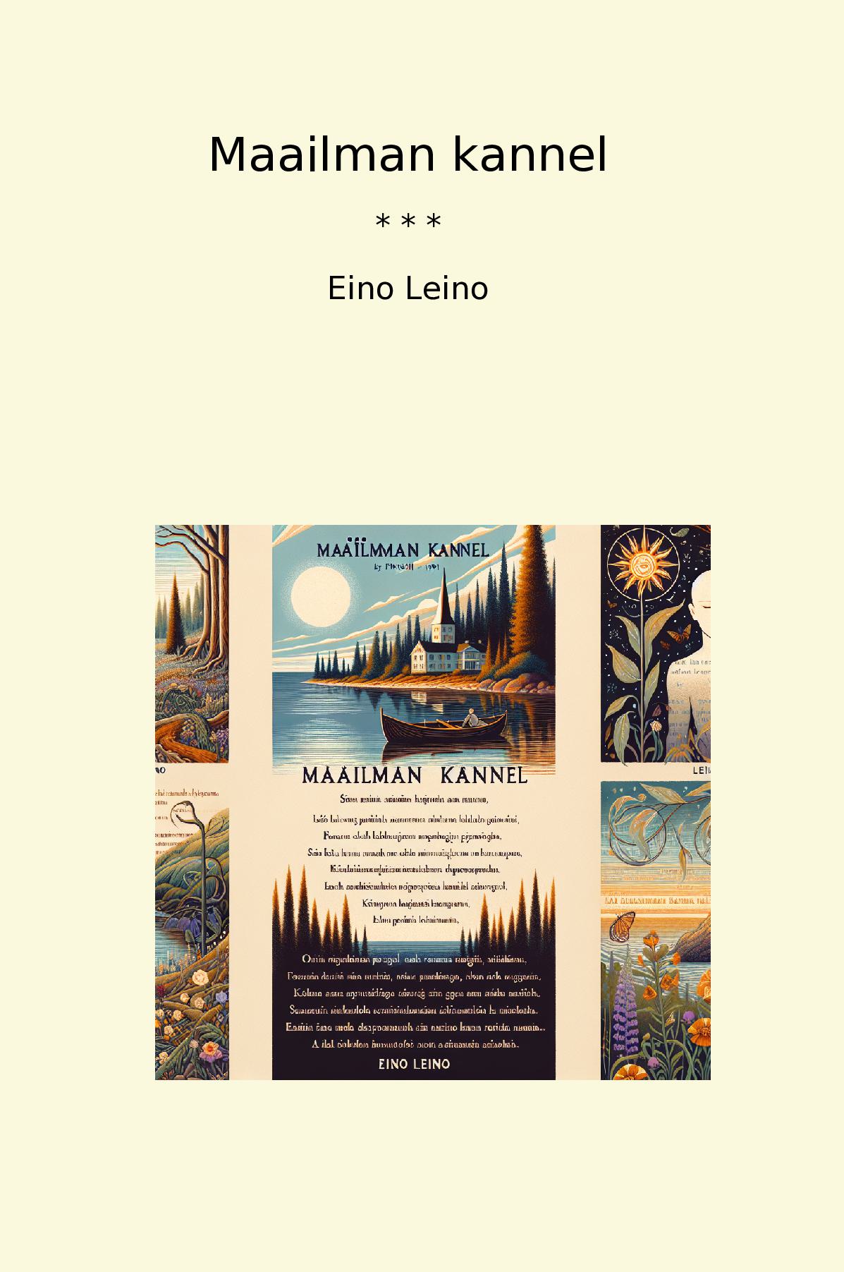 Maailman kannel on Eino Leinon klassikkoteos, joka julkaistiin ensimmäisen kerran vuonna 1901. Teos yhdistää runoutta ja proosaa, ja se on osa suomalaista kulttuurihistoriamme aarrearkkua. Leinon luoma kieli on kauniisti rytmitettyä ja syvällistä, ja se vie lukijat unohtumattomalle matkalle ihmismielen ja luonnon väliseen suhteeseen.Kirja käsittelee elämän suuria kysymyksiä, kuten rakkauden, surun ja olemassaolon merkitystä. Sen sävelteokset ja laulut ovat täynnä tunnetta ja symboliikkaa, mikä tekee niistä ajattomia ja resonoivia eri sukupolvien keskuudessa. Maailman kannel on tärkeä osa suomalaisen romantismin ja modernismin siirtymätunnelmaa.Eino Leinon teos on inspiroinut monia lukijoita ja taiteilijoita, ja sen yhä ajankohtaiset teemat tekevät siitä erinomaisen lukukokemuksen kaikille, jotka arvostavat kaunista kieltä ja syvällistä pohdintaa.