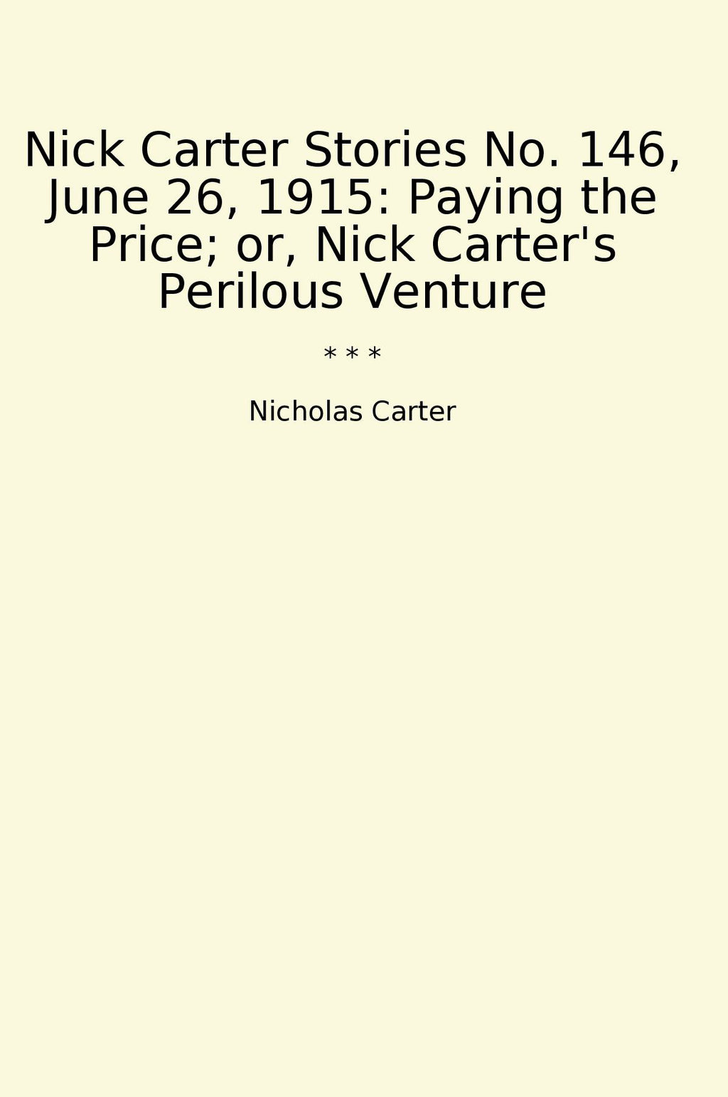 In this classic book, "Nick Carter Stories No. 146, June 26, 1915: Paying the Price; or, Nick Carter's Perilous Venture," we follow the famous detective Nick Carter as he embarks on a dangerous mission filled with suspense and intrigue. Written by the talented author and writer Nicholas Carter, the story unfolds as Nick Carter navigates a perilous venture where he must face sinister villains and overcome treacherous obstacles to solve a high-stakes case. With its gripping plot twists and exciting action sequences, this book immerses readers in a thrilling mystery that will keep them on the edge of their seats until the very end. "Paying the Price" is a must-read for fans of detective fiction and those who enjoy a riveting tale of danger and suspense.
