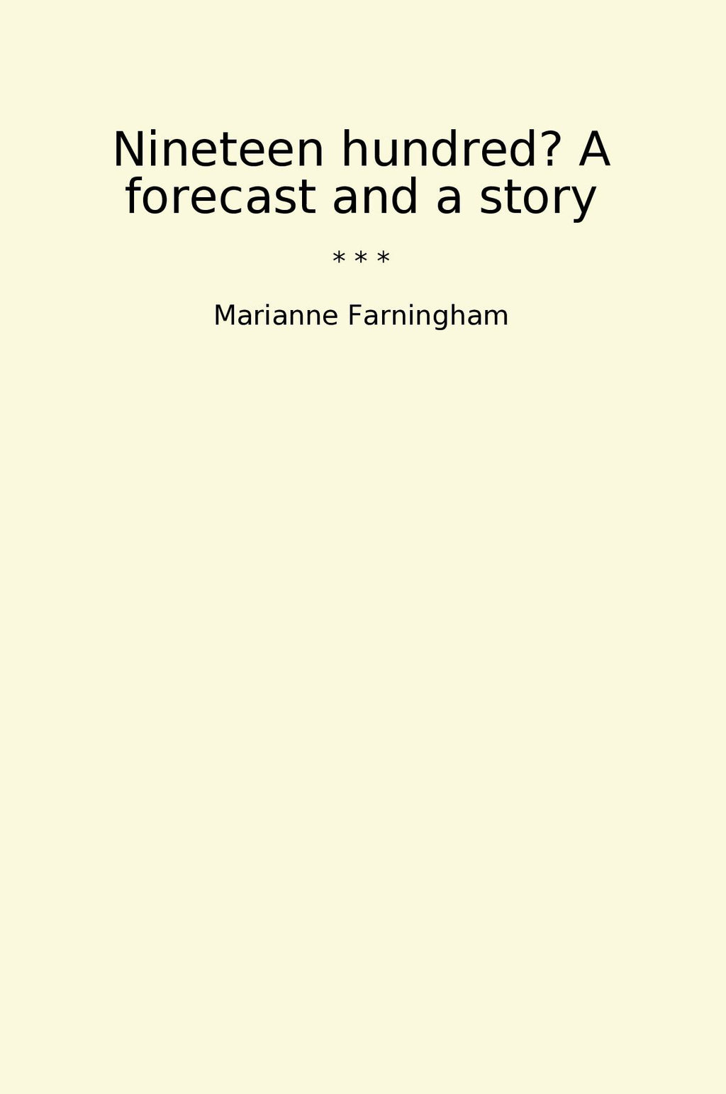 "Nineteen hundred? A forecast and a story" by Marianne Farningham is a classic book that combines elements of fiction and prediction in a thought-provoking manner. Originally published in 1892, Farningham takes the reader on a journey into the future, specifically the year 1900, and imagines what the world could potentially look like.