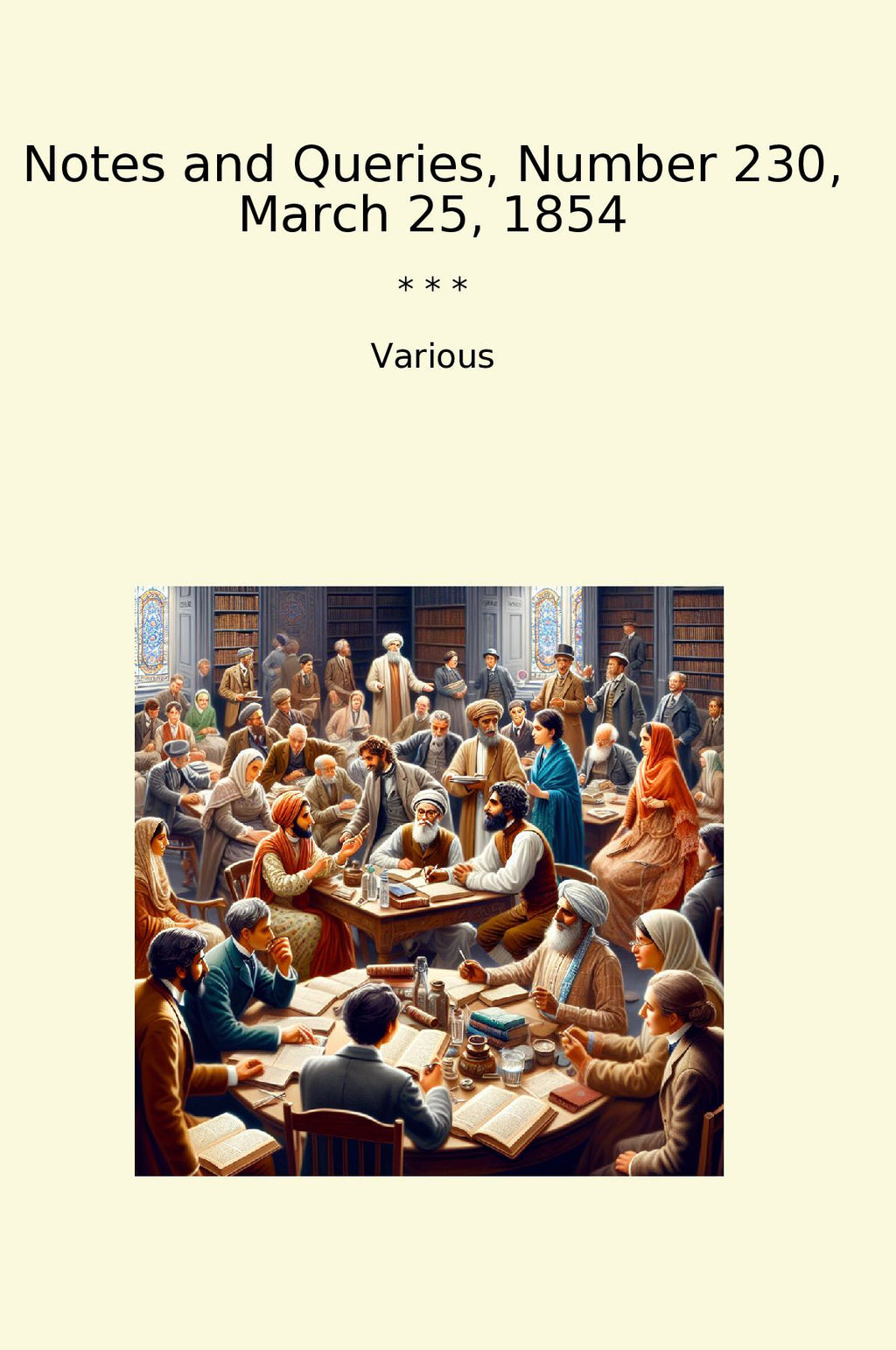 "Notes and Queries, Number 230, March 25, 1854," presents a fascinating collection of inquiries and discussions that reflect the intellectual curiosity of its era. This edition, part of a long-running series published in the 19th century, highlights various topics ranging from historical anecdotes to linguistic queries. The contributors, a diverse group of scholars and amateurs, engage in a lively exchange of ideas, showcasing the depth of scholarly interest in folklore, literature, and antiquities.