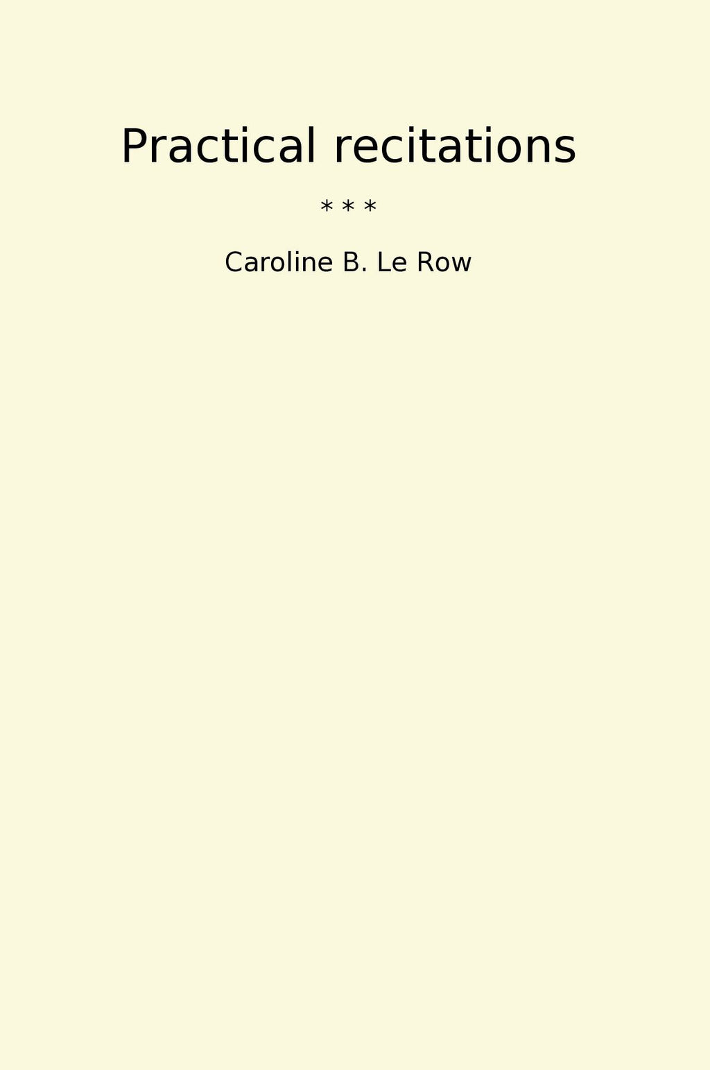 "Practical Recitations" by Caroline B. Le Row is a classic book that offers a collection of recitations for various occasions. With its publication in the 19th century, the book became a comprehensive guide for individuals looking for speeches and recitations that could be used in public speaking engagements, school events, or personal presentations.