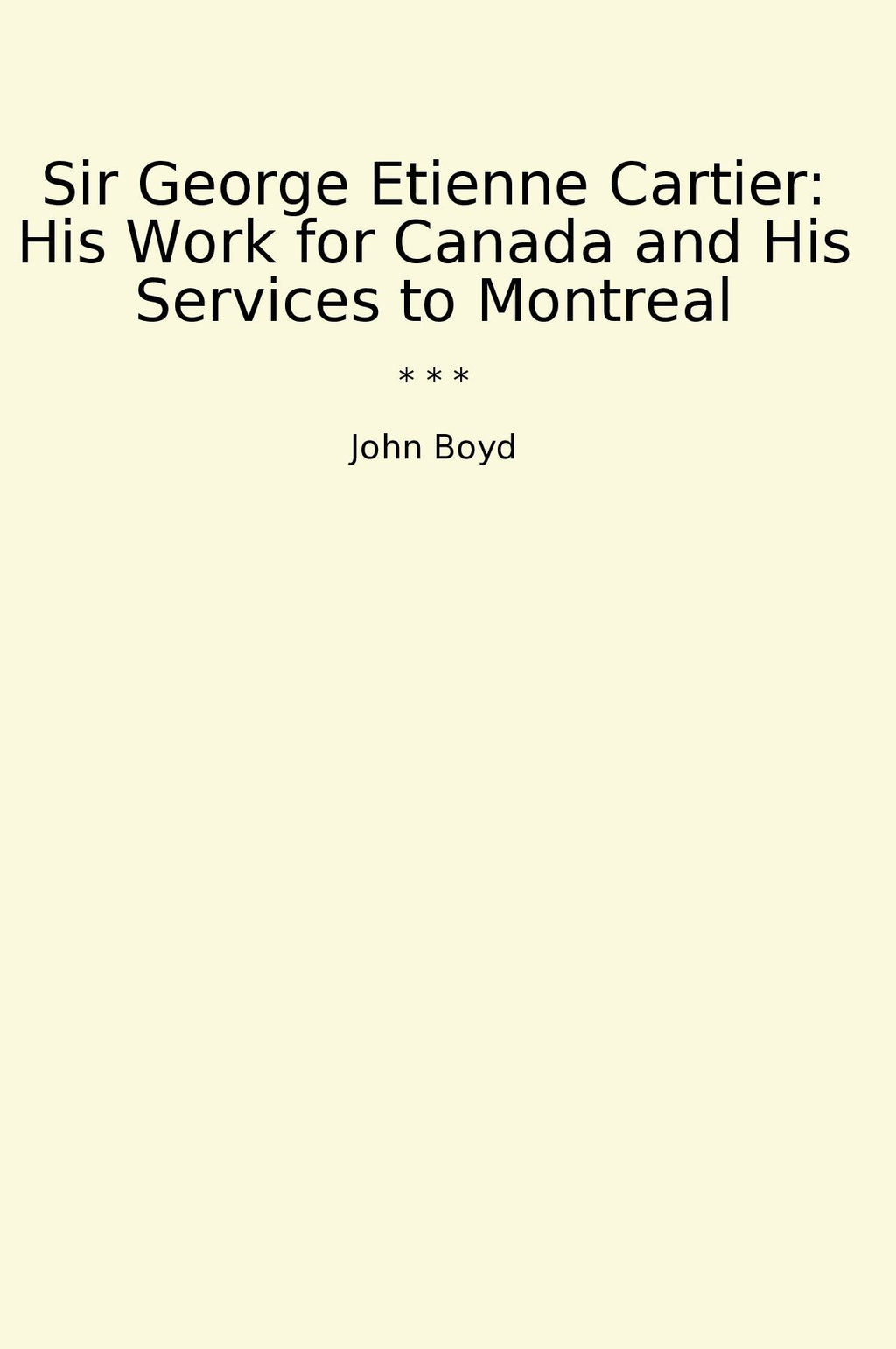 Through meticulous research and engaging storytelling, Boyd paints a vivid picture of Cartier's accomplishments and enduring legacy. This book is a must-read for anyone interested in Canadian history, politics, or the life of a remarkable statesman. Sir George Etienne Cartier: His Work for Canada and His Services to Montreal is a masterfully written account that sheds light on a pivotal period in Canadian history.