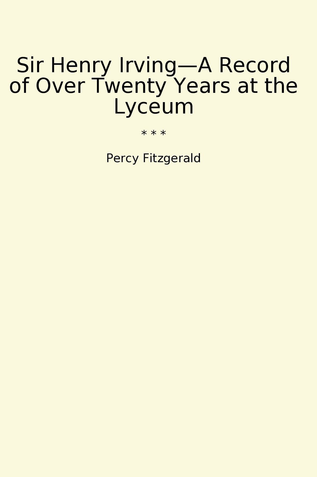 "Sir Henry Irving—A Record of Over Twenty Years at the Lyceum" by Percy Fitzgerald is a classic book that provides an in-depth look at the life and career of one of the most renowned actors of the 19th century. Sir Henry Irving was a pioneering figure in the world of theatre, known for his groundbreaking performances and innovative productions at the Lyceum Theatre in London.