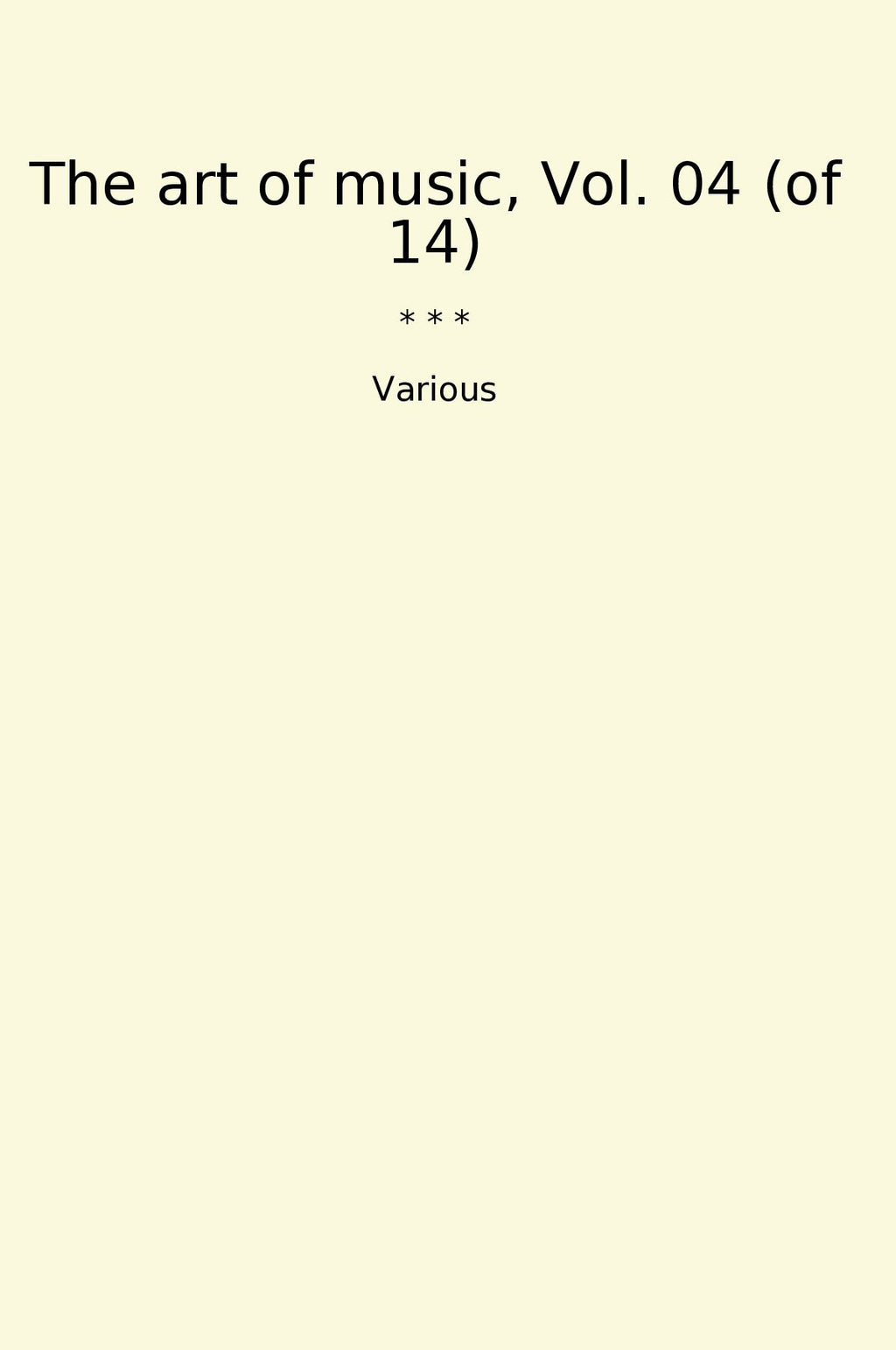 "The Art of Music, Vol. 04 (of 14)" is a classic book that delves into the world of music and its various aspects. Written by various authors, this volume of the series provides a comprehensive look at different aspects of music, including music theory, composition, and performance.