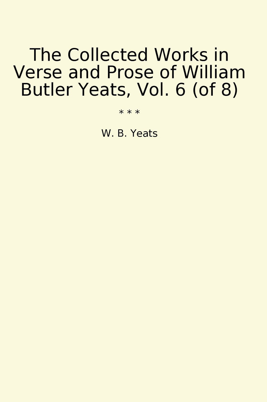 The Collected Works in Verse and Prose of William Butler Yeats, Vol. 6 (of 8) is a comprehensive collection of the works of the acclaimed Irish poet and writer, W. B. Yeats. This volume showcases Yeats' prolific output of poetry, plays, essays, and other writings, offering readers a deep dive into the mind of one of the most influential literary figures of the 20th century. Yeats explores themes such as mythology, symbolism, and Irish folklore, captivating readers with his vivid imagery and profound insights. This collection is a must-read for fans of Yeats' work and for anyone interested in exploring the rich tapestry of Irish literature.