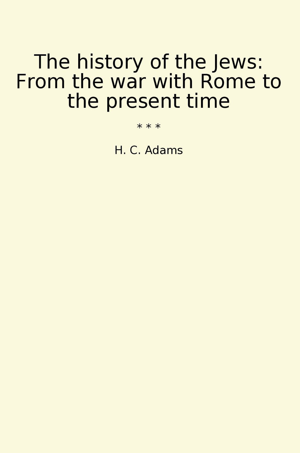 The History of the Jews: From the War with Rome to the Present Time takes readers on a sweeping journey through the centuries, tracing the remarkable history of the Jewish people from the destruction of the Second Temple in Jerusalem by the Romans to the modern era. Written by H.C. Adams, a renowned author and historian, this classic book offers a comprehensive and insightful account of the Jewish experience, exploring their struggles, triumphs, and contributions to the world.