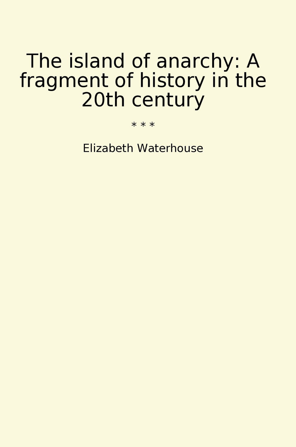 The Island of Anarchy: A Fragment of History in the 20th Century is a classic book written by Elizabeth Waterhouse. This compelling novel takes place in the early 1900s, in a fictional island nation called Anarchy. The story follows the lives of the island's inhabitants as they struggle against an oppressive and corrupt government.