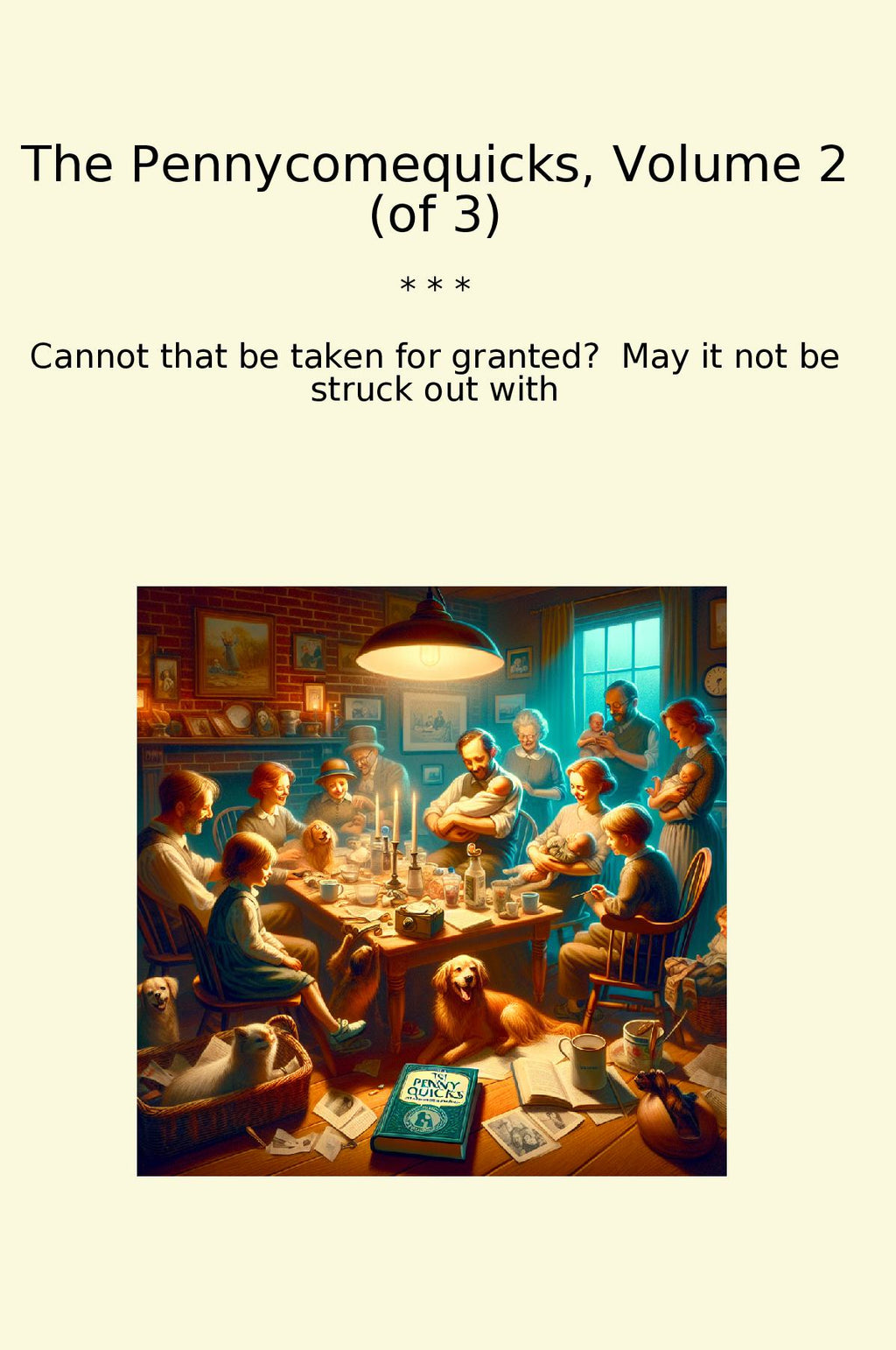 The Pennycomequicks, Volume 2 by Author and Writer Cannot that be taken for granted is a classic novel that continues the story of the Pennycomequick family. In this volume, readers are taken further into the lives and struggles of the characters as they navigate the challenges of love, loss, and societal expectations. The writing is beautifully crafted, with vivid descriptions and a keen insight into human emotions and relationships. The author delves deeper into the complexities of the Pennycomequick family dynamics, creating a compelling narrative that keeps readers engaged from beginning to end. Overall, "The Pennycomequicks, Volume 2" is a timeless tale that resonates with readers of all ages, making it a must-read for fans of classic literature.