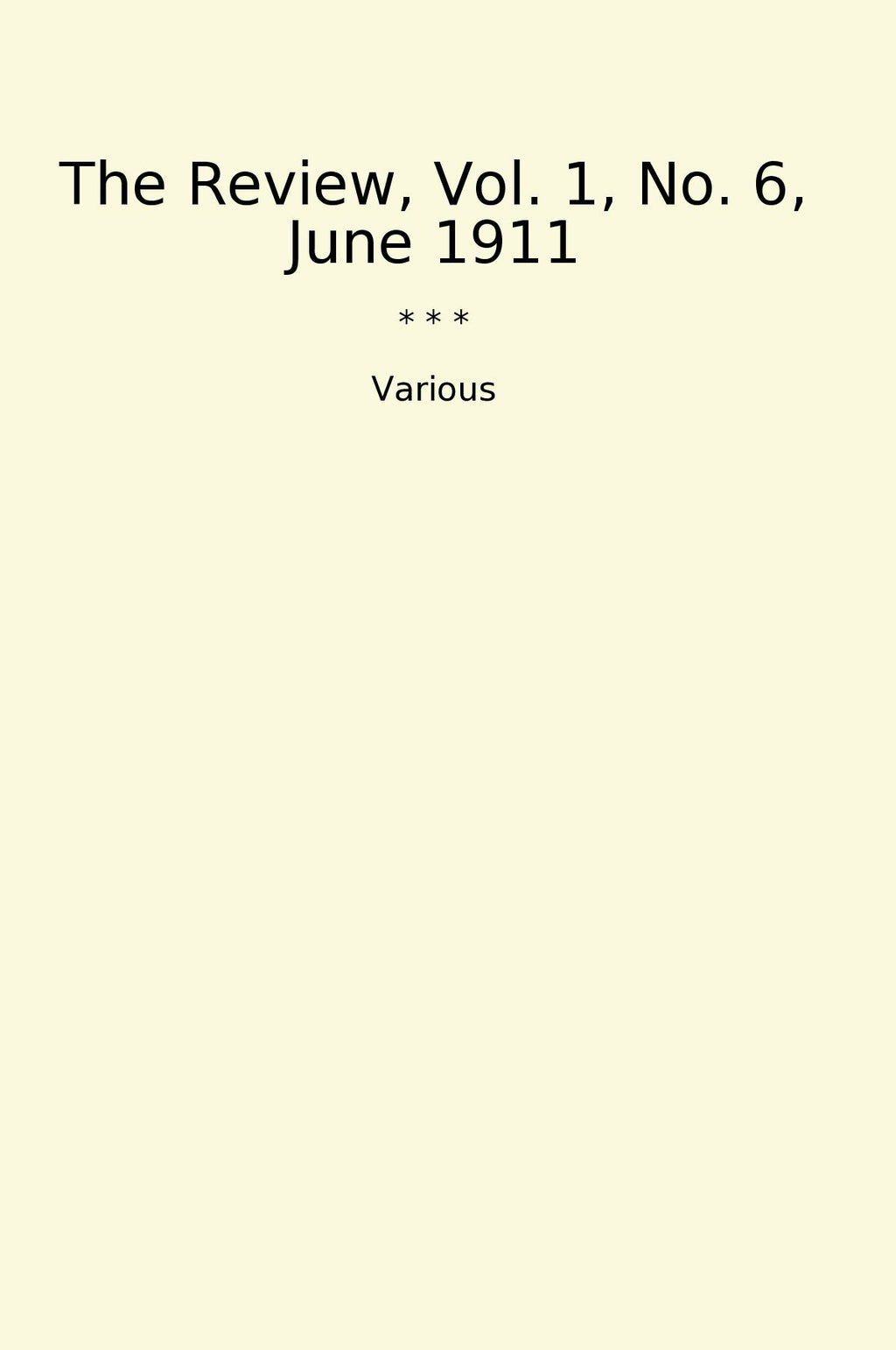 The Review, Vol. 1, No. 6, June 1911 is a classic book that showcases the work of various authors and writers. This compilation of literary pieces offers a diverse range of genres, including fiction, essays, and poetry. The book aims to inform and entertain readers, while also providing a platform for emerging and established writers to showcase their talents.