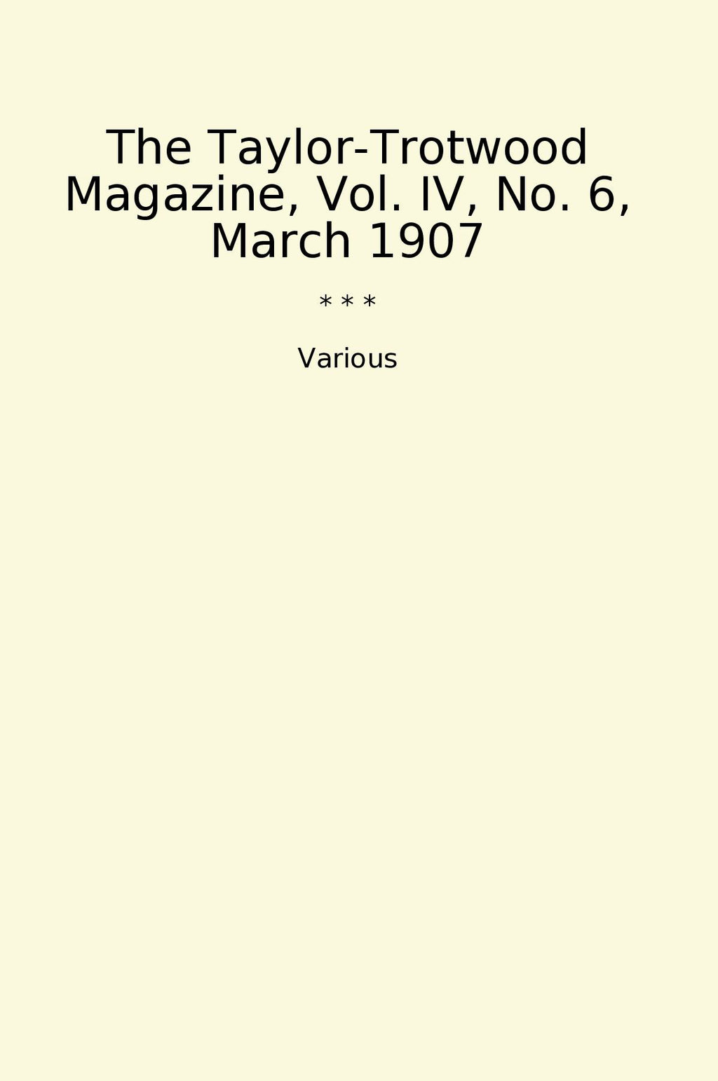 The Taylor-Trotwood Magazine, Vol. IV, No. 6, March 1907 is a classic book filled with a compilation of articles, stories, and poetry from various authors and writers. This March 1907 edition of the magazine provides readers with a glimpse into the literary world of the early 20th century.