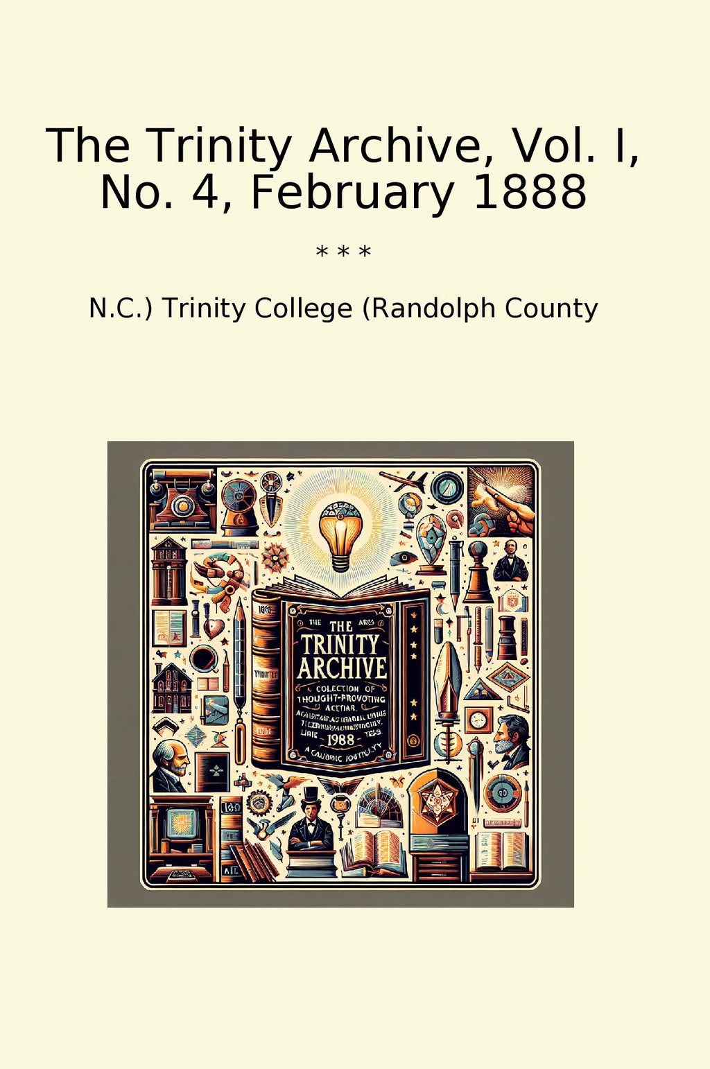 The Trinity Archive, Vol. I, No. 4, February 1888 is a classic book published by Trinity College in Randolph County. This edition features a collection of thought-provoking articles, essays, and poems that offer insight into the cultural and intellectual landscape of the late 19th century. The publication serves as a window into the past, providing readers with a glimpse of the period's prevailing ideas and values. With contributions from various authors and writers, the magazine offers a diverse range of perspectives on topics such as literature, history, and philosophy. The Trinity Archive is a valuable resource for anyone interested in exploring the intellectual currents of the time and gaining a deeper understanding of the society in which it was produced.