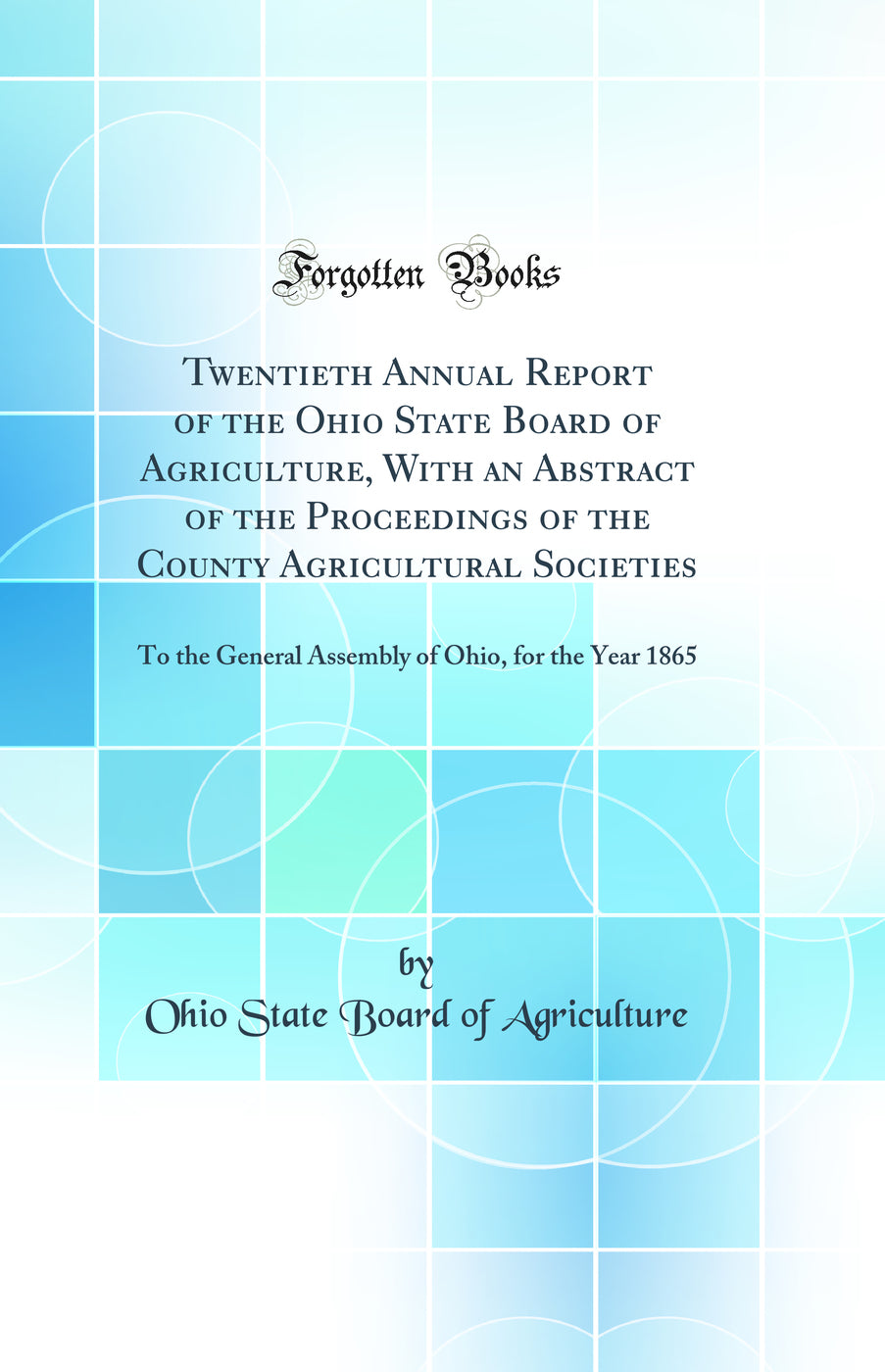 The digital edition of all books may be viewed on our website before purchase. Excerpt from Twentieth Annual Report of the Ohio State Board of Agriculture, With an Abstract of the Proceedings of the County Agricultural Societies: To the General Assembly of Ohio, for the Year 1865 (Classic Reprint)