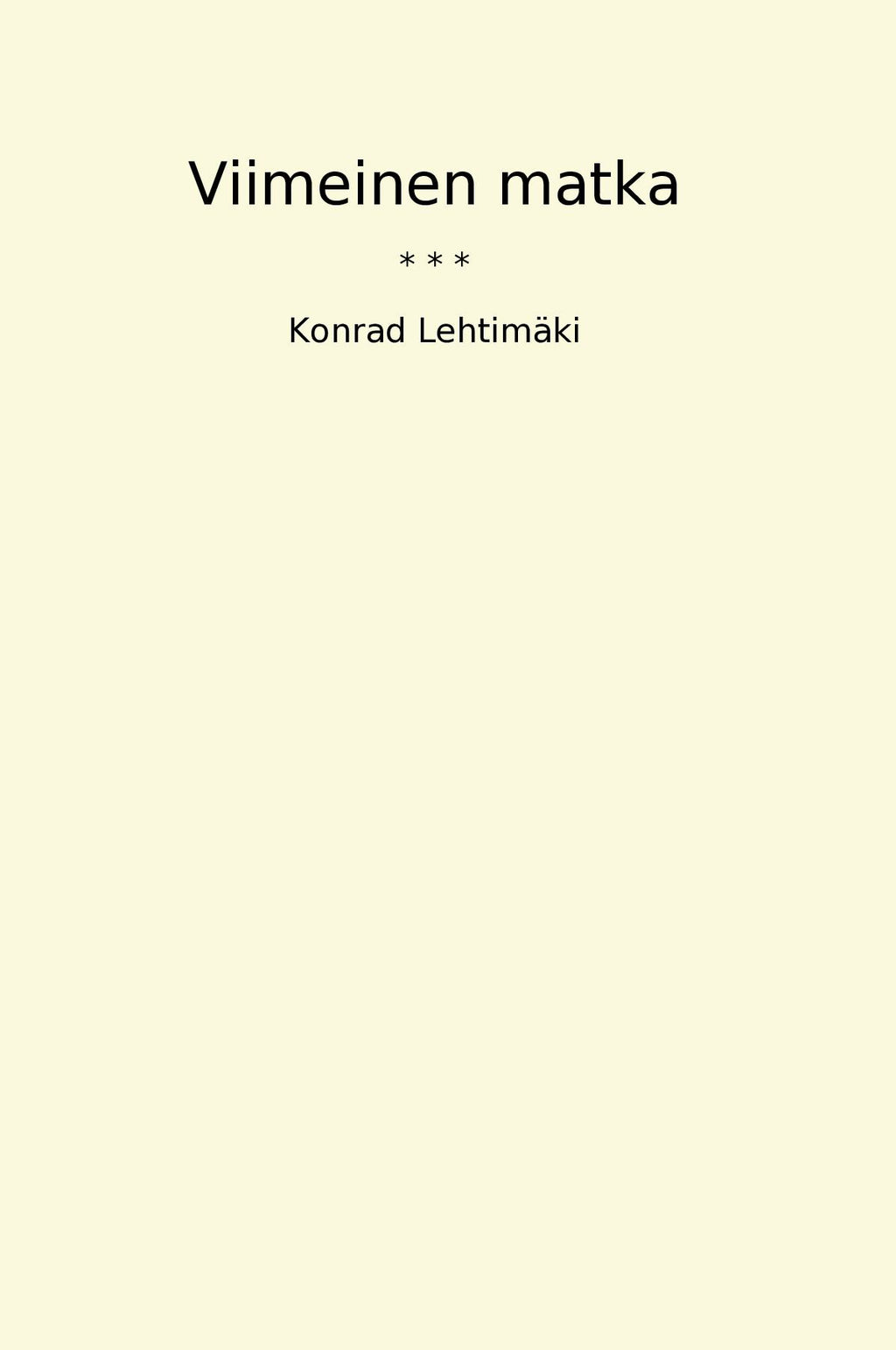 "Viimeinen matka" on klassikkokirja, joka on kirjoitettu Konrad Lehtimäen toimesta. Se kertoo tarinan Matista, nuoresta miehestä joka päättää lähteä elämänsä viimeiselle matkalle. Matka vie hänet läpi erilaisten maisemien ja tilanteiden, samalla kun hän kohtaa erilaisia ihmisiä ja kulttuureita. Kirja käsittelee teemoja kuten elämän tarkoitus, kuolema ja ihmisen etsintää.