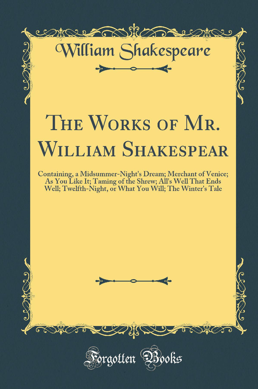 The digital edition of all books may be viewed on our website before purchase. Excerpt from The Works of Mr. William Shakespear: Containing, a Midsummer-Night''s Dream; Merchant of Venice; As You Like It; Taming of the Shrew; All''s Well That Ends Well; Twelfth-Night, or What You Will; The Winter''s Tale (Classic Reprint)