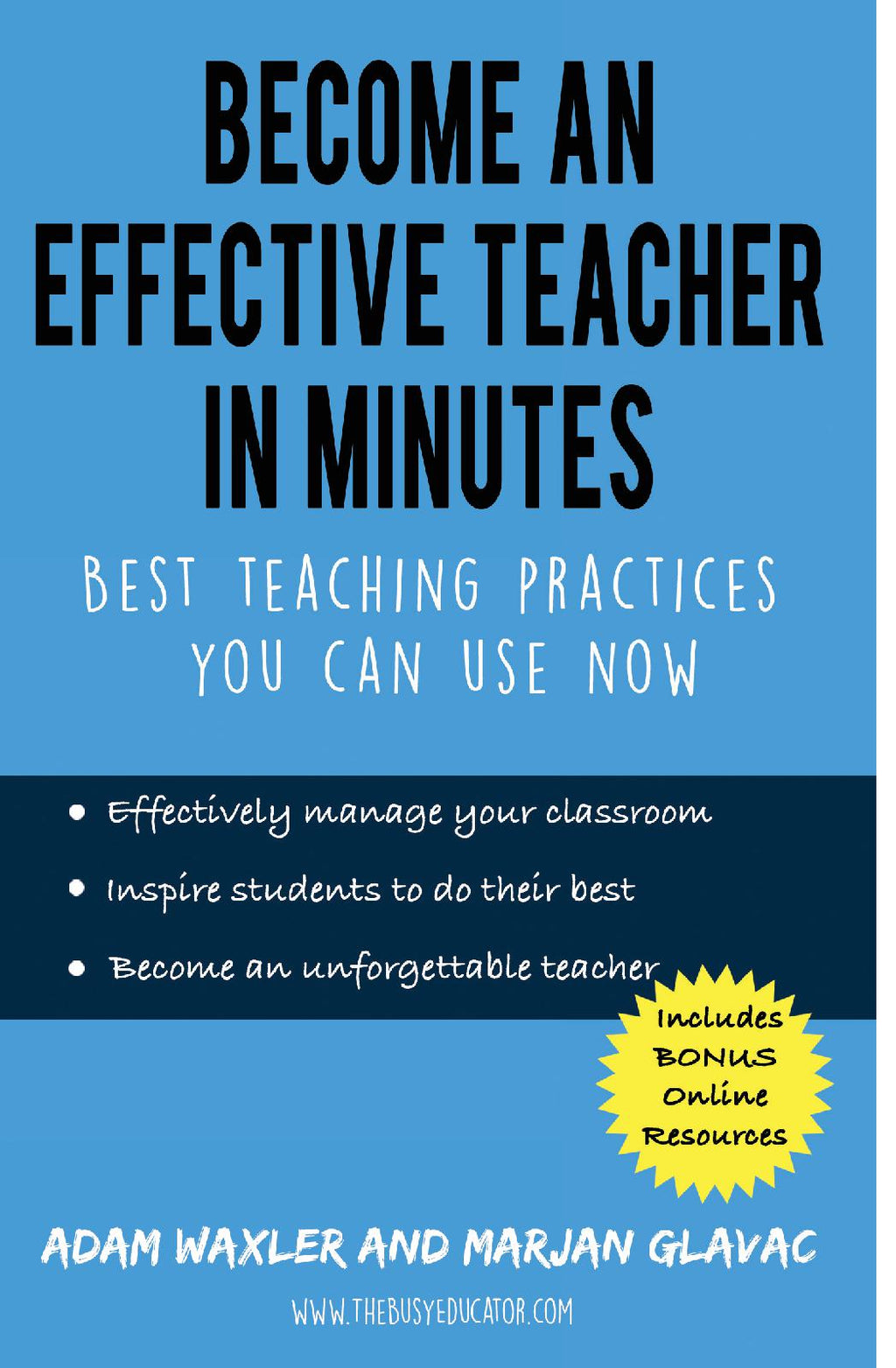 What if you could succeed with a disruptive student, connect with an angry parent or impress a skeptical principal with a new idea, a new procedure, or a new way of looking at something? And what if you could do all these things... Save countless hours during the school year Teach students to believe in themselves Create a positive environment based on mutual respect Maintain high academic expectations for all students Get 100% participation in your class with one simple technique Motivate unmotivated students Spend less time on classroom management and more time teaching Learn how to stay calm amid the chaos Help your students feel safe making mistakes Have fun with your students and more... That’s what this book is all about. It’s a collection of teacher time tested ideas, resources and strategies that will make you an effective teacher in minutes. The book also comes with bonus downloadable content. "Marjan, you are making a difference in the lives of students and in the world." Harry Wong Harry and his wife Rosemary are the authors of The First Days of School, which has sold over 5 million copies. “Adam is a shining star. He is one of those truly gifted teachers that students love. Adam's passion for teaching and for the content of his subject are inspiring. Recently, I observed a 90-minute social studies lesson in his classroom. The lesson was flawless from beginning to end. Adam's lesson reflected his knowledge of best teaching practices. He captured students' interest, used a variety of instructional strategies, and checked for understanding throughout the lesson. Adam is a gift to the teaching profession. He is a ‘teacher leader’ who is respected by his colleagues, parents, and administration.” Nancy Carney, Principal, Springs Middle School, East Hampton, NY USA