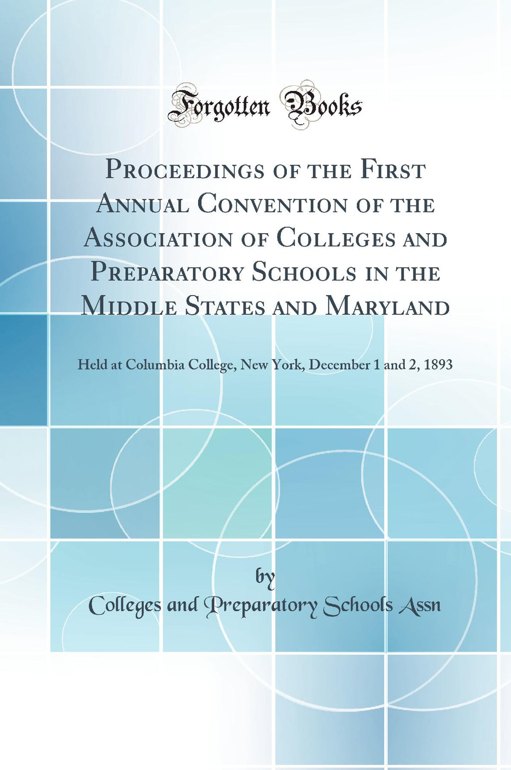 The digital edition of all books may be viewed on our website before purchase. Excerpt from Proceedings of the First Annual Convention of the Association of Colleges and Preparatory Schools in the Middle States and Maryland: Held at Columbia College, New York, December 1 and 2, 1893 (Classic Reprint)