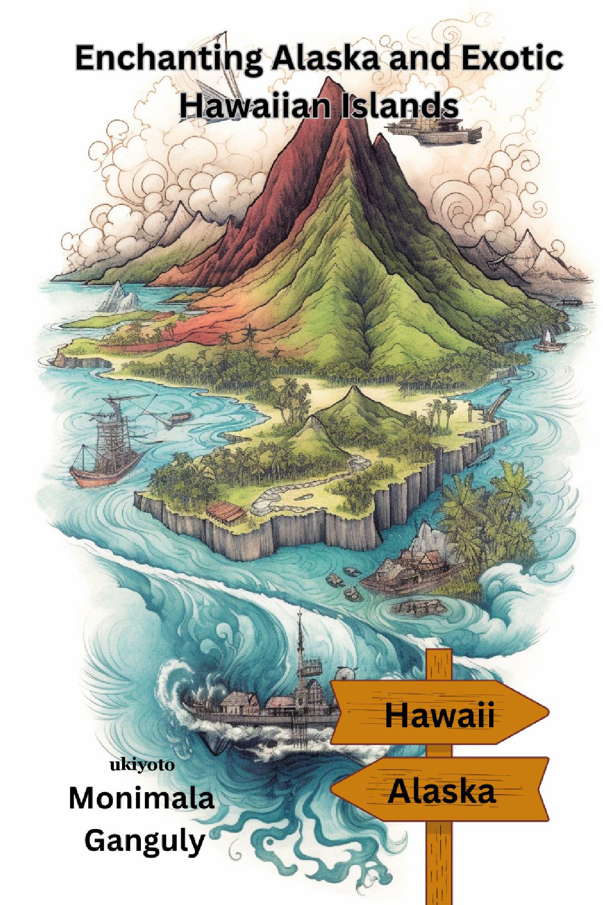 Diary of a Fascinating Journey to Alaska and Hawaii... Let me share a few words about the book. America is a vast country filled with diverse natural beauty across various states. Among these, two exceptionally beautiful states or islands are Alaska and the Hawaiian archipelago. It was my privilege to visit these two places. My interest in Alaska began during my childhood through geography lessons. Hawaii, on the other hand, intrigued us endlessly. These two places are not just about natural beauty; they possess unique characteristics of their own. The inhabitants, their customs, attire, cuisine, religious practices, and language set them apart from many other places. I’ve spent nearly twelve days in Alaska, mesmerized by its natural beauty. From the vast mountain ranges to the tundra regions, Arctic areas, glacier landings, sea planes, cruises, and experiencing the ocean currents, I’ve tried to capture every experience in my book. I’ve endeavored to bring readers into that dream world. The extent of my success can only be judged by the readers. Including a few pictures will enhance the readers’ connection with the book. I’ve tried to provide information, but instead of burdening the book with facts, I’ve aimed to take readers on a journey with me. If through my writing, I can bring joy to a few travel enthusiasts, then my effort will be worthwhile. I’ve spent around 22 days touring the four main islands of Hawaii. The serene beauty of the Pacific Ocean, referred to as the queen or heaven of the tranquil ocean due to my son’s profound desire, urged me to take up the pen and sketch my experiences in diary form. I’ve attempted to convey the religious practices, deities, the spirit of aloha, language, and daily life of the Hawaiian islanders through words, trying to immerse readers in the essence of these islands. The abundant treasures of nature, the amalgamation of colors, scents, and flavors of these two places have been captured. I’ve wielded my pen as the only means to portray the unadulterated gift of nature. Perhaps it’s not an easy task, but I believe that with perseverance and sincerity, human endeavor, capable of winning the hearts of readers. I hope this composition, emanating from my heart, will resonate with the hearts of readers. I cherish the hope that I can do justice to the opportunity you’ve given me. I look forward to presenting more compositions to my readers. Countless thanks