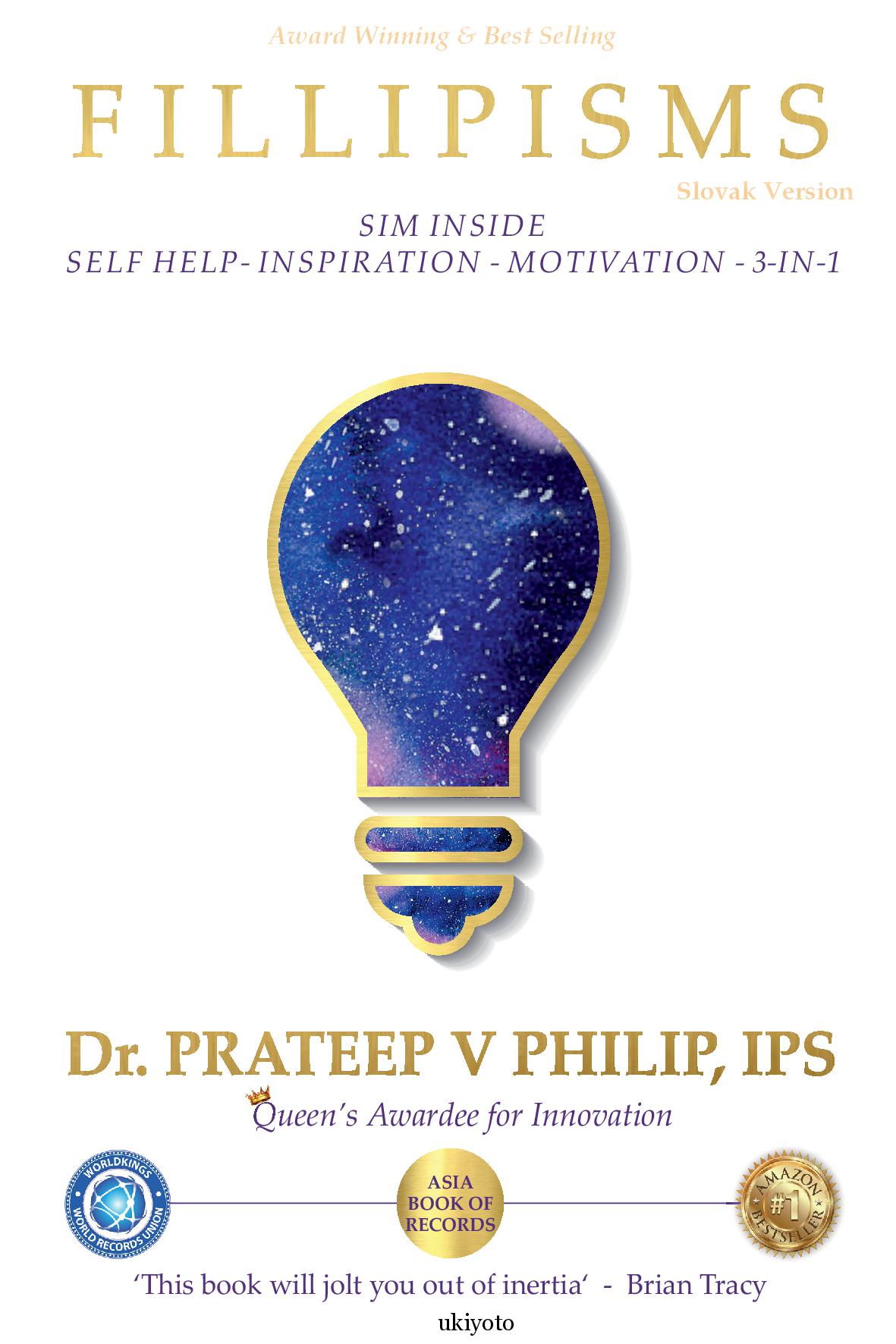 'Je úžasné, že Dr. Prateep Philip má více púvodních citátů než jakákoli jiná osoba na světě a v historii. Tato kniha vás vytrhne z vaši komfortní zóny.Brian Tracy: Motivační řečnik, autor 70 knih.'V súčasnosti je Dr. Prateep V Philip generálnym radim CBCID-policie v Tamil Nadu, Indi Je provim svetovej prvej kobombonej vrady, kde obetou bol bývalý indický pramer Shri Rajiv Gandhi. Po tomto incidente dostal fudskú sústrast od neznámeho občana, čo ho inšpirovalo k založeniu hnutia 'Priatelia policie'. Toto hnutie získalo viaceré ocenenia, vrátane ceny Královnej Alžbety II. za inovácie v oblasti policajného vzdelávania a rozvoja a ceny SKOCH Gold Award-najvyššie nezávislé civilné ocenenie v Indii.Dr. Prateep V Philip bol prvým vysoko postaveným civilným úradnikom v Indii, ktorý ziskal stipendium Gurukul Chevening na vedenie a excelenciu na štúdium globálnej ekonomiky na Londýnskej škole ekonómie. Tamyytvoril novú oblast Exconomics, prvú interdisciplinámu štúdiu o vynikajú práci na svete. Okrem toho napisal tri knihy. Ako neúnavný inovátor vytvoril aj jedinečný myšlienkový proces Equilibrium Thinking (Rovnovážne myslenie).'Fillipsis' je neustále rastúci zhnutie zivotných skúsenosti Dr. Pratopa V. Philipa a je výsledkom dosledkov myslenia EQ