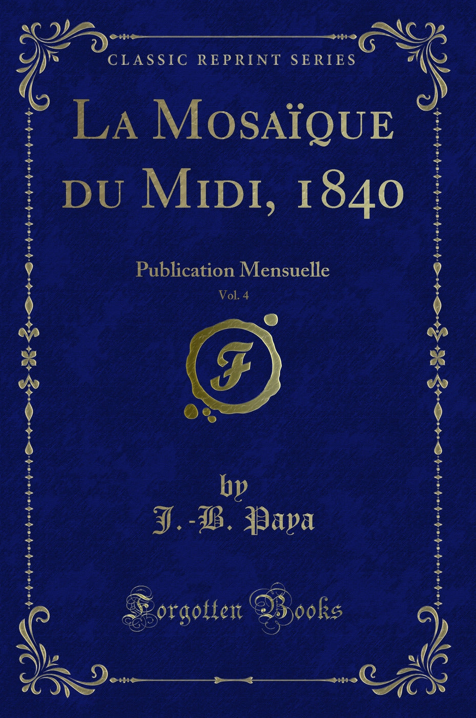 The digital edition of all books may be viewed on our website before purchase. Excerpt from La Mosaïque du Midi, 1840, Vol. 4: Publication Mensuelle (Classic Reprint)