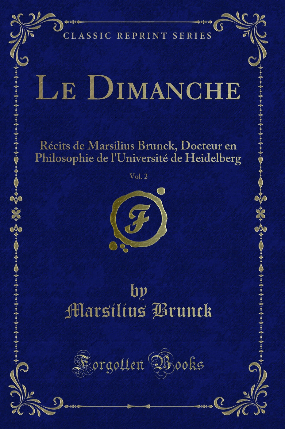 The digital edition of all books may be viewed on our website before purchase. Excerpt from Le Dimanche, Vol. 2: Récits de Marsilius Brunck, Docteur en Philosophie de l''Université de Heidelberg (Classic Reprint)