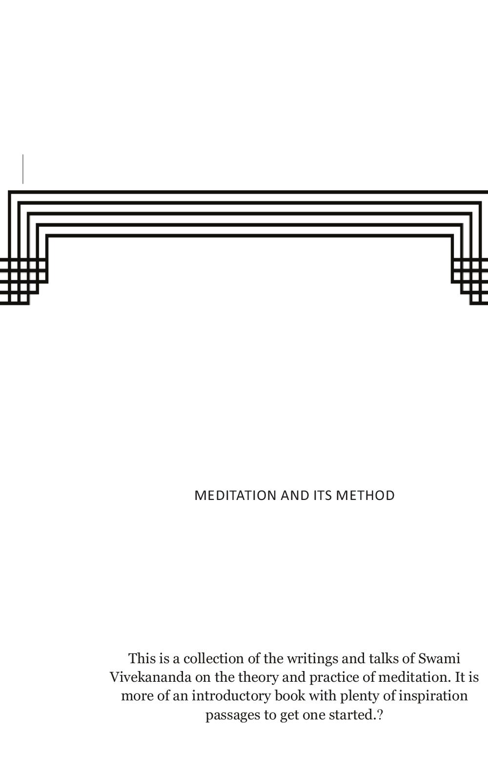 This book is a collection of Swami Vivekananda's explanation of Meditation, his writings and lectures on Meditation, its benefits and its methods. It is a book with teachings from the life of Swami Vivekananda, to help one get through the chaos in one's life. Swami ji believed that meditation should be of a negative nature. Think away everything. Analyze everything that comes in the mind by the sheer action of the will. Next, assert what we really are existence, knowledge and bliss being, knowin