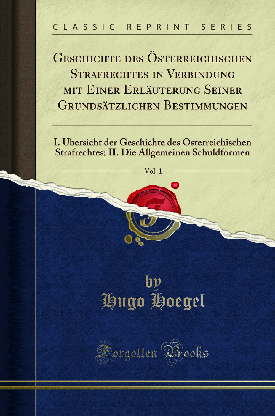 The digital edition of all books may be viewed on our website before purchase. Excerpt from Geschichte des Österreichischen Strafrechtes in Verbindung mit Einer Erläuterung Seiner Grundsätzlichen Bestimmungen, Vol. 1: I. Übersicht der Geschichte des Österreichischen Strafrechtes; II. Die Allgemeinen Schuldformen (Classic Reprint)