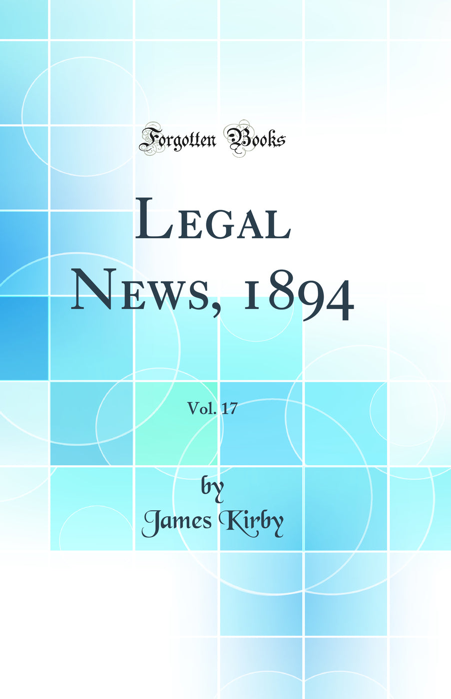The digital edition of all books may be viewed on our website before purchase. Excerpt from Legal News, 1894, Vol. 17 (Classic Reprint)