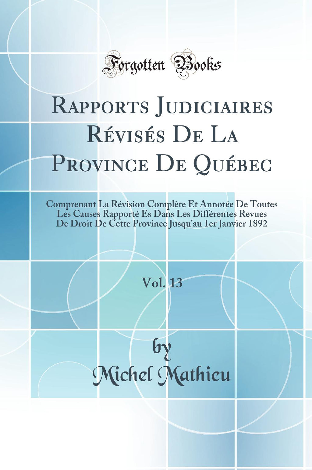 The digital edition of all books may be viewed on our website before purchase. Excerpt from Rapports Judiciaires Révisés De La Province De Québec, Vol. 13: Comprenant La Révision Complète Et Annotée De Toutes Les Causes Rapporté Es Dans Les Différentes Revues De Droit De Cette Province Jusqu''au 1er Janvier 1892 (Classic Reprint)