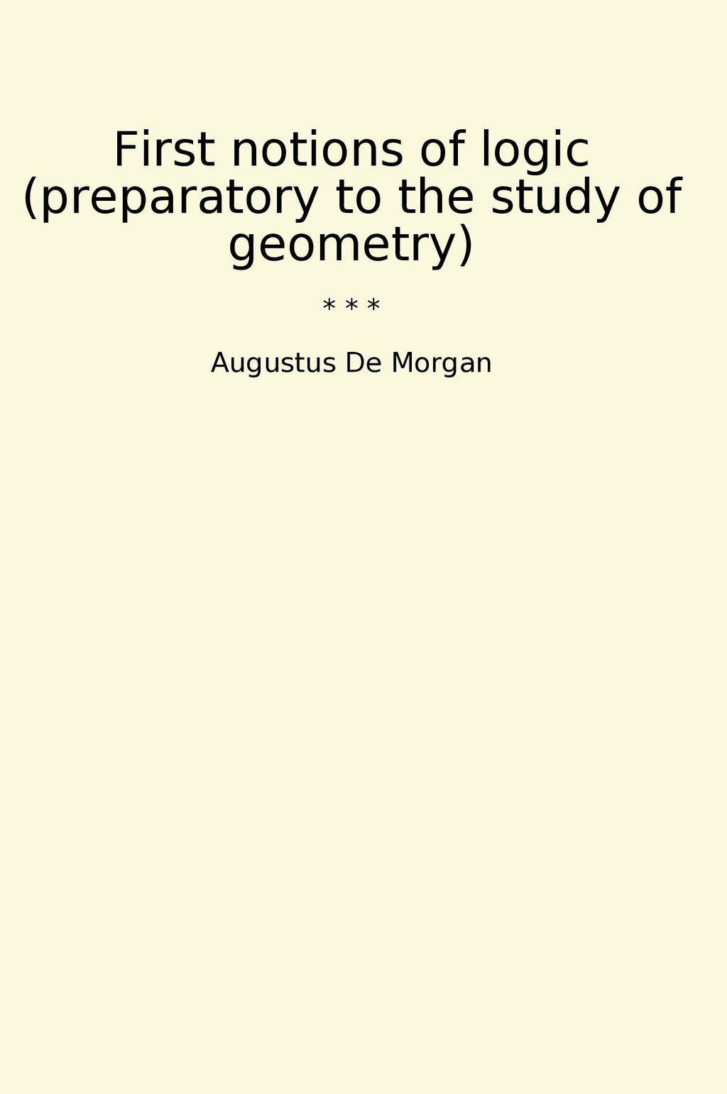 "First Notions of Logic" by Augustus De Morgan is a foundational text that serves as a preparatory guide for the study of geometry. De Morgan, a prominent mathematician and logician, covers the fundamental principles of logic in a clear and accessible manner, making it an essential read for anyone delving into the realm of mathematical reasoning. This classic book provides readers with a solid understanding of logical concepts, such as deduction, inference, and syllogisms, which are crucial for developing strong problem-solving skills. De Morgan's expertise in the subject shines through in this comprehensive guide, making it a valuable resource for students, educators, and anyone interested in the intricacies of logical thinking.