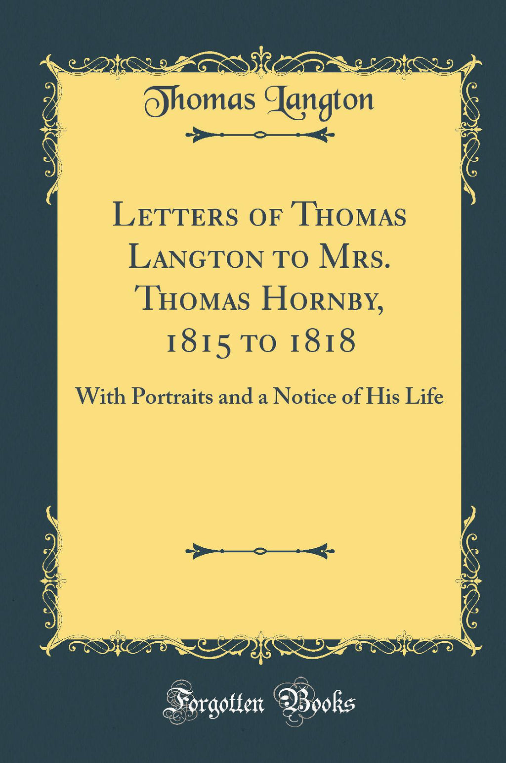 Letters of Thomas Langton to Mrs. Thomas Hornby, 1815 to 1818: With Portraits and a Notice of His Life (Classic Reprint)