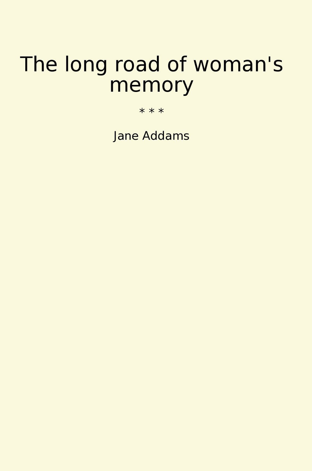 Through her powerful storytelling and compelling arguments, Addams challenges societal norms and advocates for gender equality. She highlights the importance of recognizing and valuing women's contributions to society, urging readers to reflect on the past and strive for a more inclusive and equitable future. With her insightful and thought-provoking observations, Addams sheds light on the often overlooked experiences of women and offers a unique perspective on the ongoing fight for women's rights. "The Long Road of Woman's Memory" is a timeless book that continues to inspire and provoke discussions about gender roles and equality.