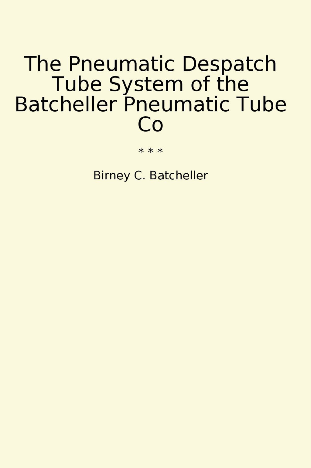 "The Pneumatic Despatch Tube System of the Batcheller Pneumatic Tube Co" by Birney C. Batcheller is a classic book that provides a detailed insight into the innovative pneumatic tube system developed by the Batcheller Pneumatic Tube Company. This system revolutionized the way businesses transported documents and small items within their buildings, allowing for quick and efficient delivery through a network of tubes. The book delves into the history of pneumatic tube technology, the mechanics behind the system, and the benefits it brought to a wide range of industries. Batcheller's expertise shines through as he explores the practical applications and advantages of this ingenious invention. A must-read for those interested in the history of transportation and communication technology.