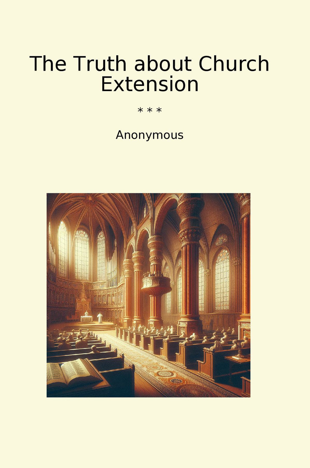 "The Truth about Church Extension" by Anonymous is a classic book that delves into the history and practices of church expansion. The author explores the motivations behind the extension of churches, the various methods employed, and the impact it has on communities. With a critical and insightful perspective, the book sheds light on the challenges and controversies surrounding church extension, while also highlighting the successes and benefits that come with it. Written in a straightforward and informative style, this book is a must-read for anyone interested in the role of churches in society and the strategies used to expand their reach. Overall, "The Truth about Church Extension" offers a comprehensive look at this important aspect of religious life and provides valuable insights for readers seeking a deeper understanding of the topic.