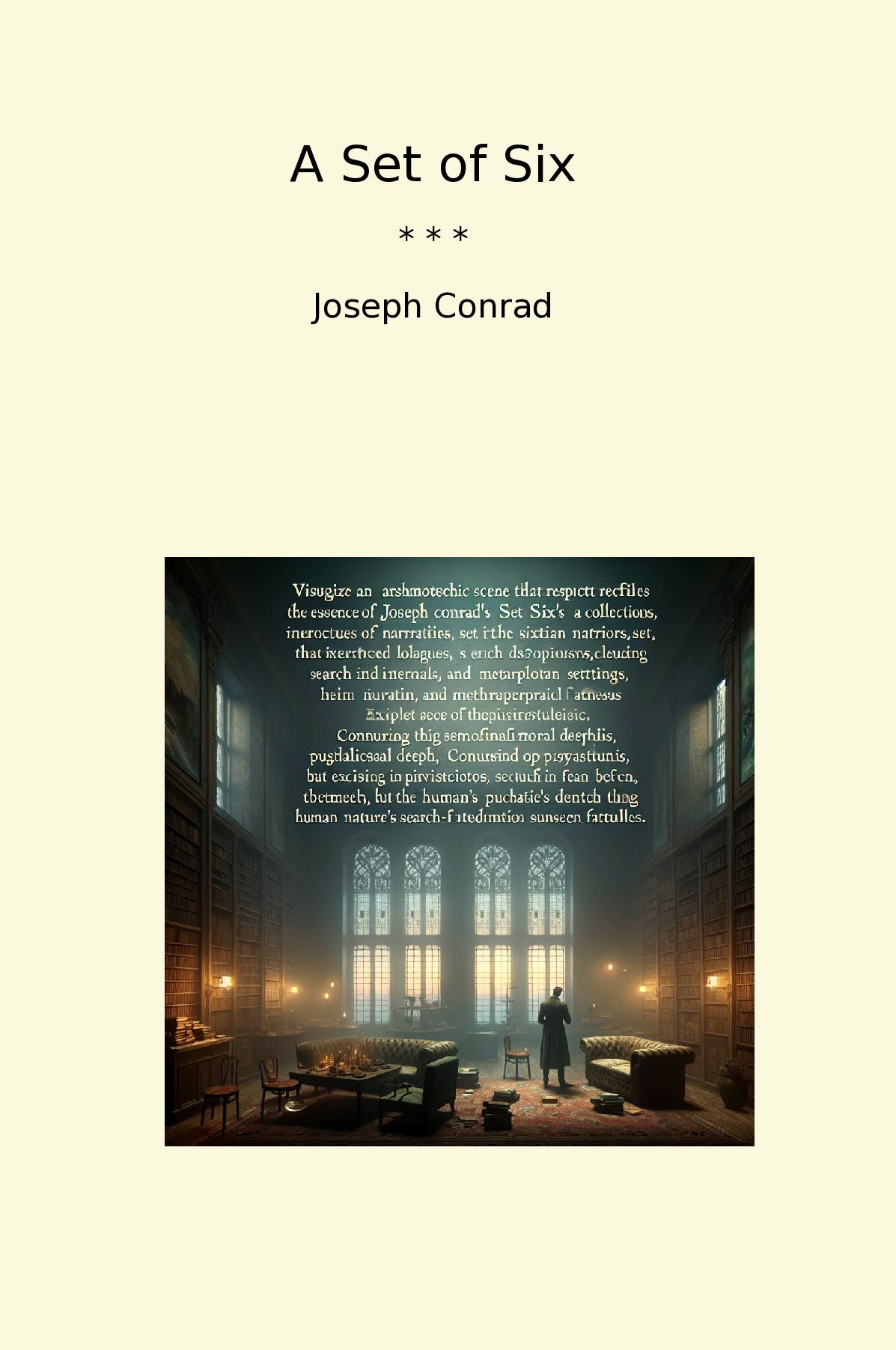A Set of Six by Joseph Conrad is a collection of six interrelated stories that delve into the complexities of human nature and the dilemmas faced by individuals in a morally ambiguous world. Set against various backdrops, including the sea and urban landscapes, Conrad’s narratives explore themes of obsession, betrayal, and the struggle for redemption. The tales are rich in psychological depth, showcasing Conrad’s hallmark exploration of existential struggles and the darkness within the human psyche.Each story is intricately crafted, with vivid imagery and a profound sense of atmosphere. Conrad's mastery of language brings his characters to life, compelling readers to reflect on their own moral choices. Through nuanced storytelling and profound philosophical insights, A Set of Six offers a timeless examination of the human condition. This collection not only exemplifies Conrad's literary prowess but also invites introspection, making it a significant work within the canon of classic literature.