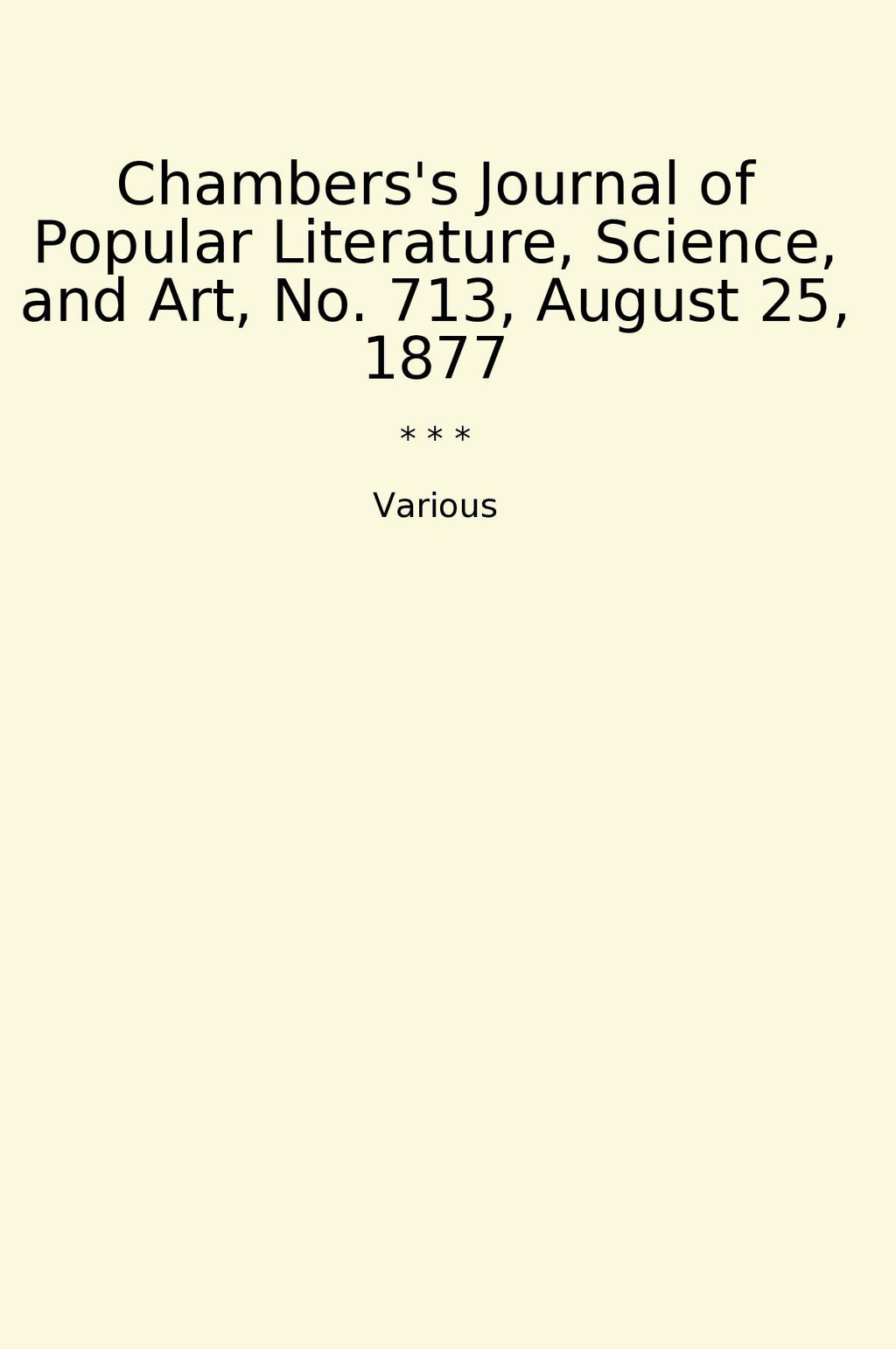 Chambers's Journal of Popular Literature, Science, and Art, No. 713, August 25, 1877 is a classic publication that offers readers a diverse range of content. This issue features compelling literature, insightful scientific articles, and beautiful art pieces, providing a well-rounded reading experience. The writing is engaging and informative, catering to a wide audience interested in various subjects. Whether you are interested in exploring new literary works, learning about the latest scientific discoveries, or admiring captivating artwork, this journal has something for everyone. Chambers's Journal has stood the test of time as a popular publication that continues to delight and inspire readers with its rich and varied content.