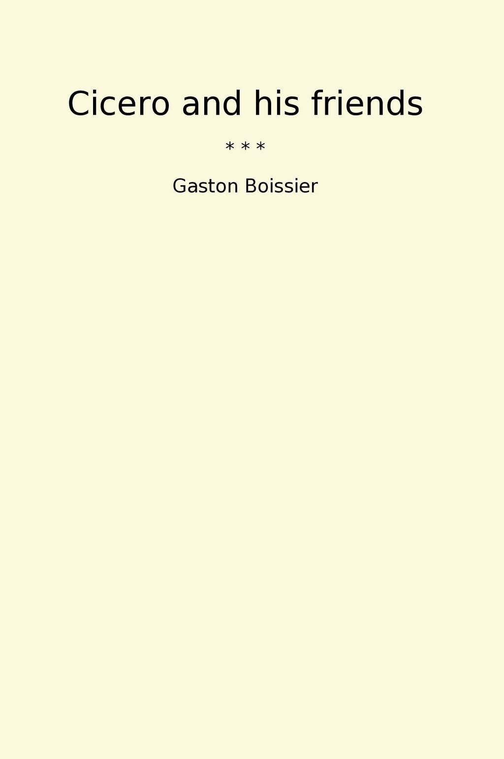 "Cicero and His Friends" by Gaston Boissier is a captivating exploration of the political and social milieu of ancient Rome. Focusing on the life of Marcus Tullius Cicero, one of the most renowned orators and statesmen of his time, Boissier delves into the intricate dynamics of Cicero's relationships with his close friends and associates. Set against the backdrop of the late Roman Republic, the book uncovers the complex web of alliances, rivalries, and betrayals that shaped the destiny of the era.