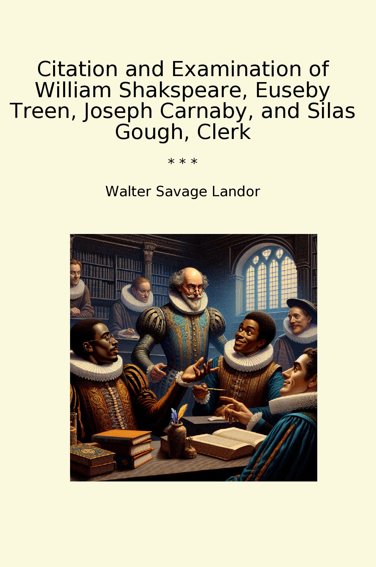 **Citation and Examination of William Shakspeare, Euseby Treen, Joseph Carnaby, and Silas Gough, Clerk** is a fascinating work by Walter Savage Landor, published in the 19th century. Through a unique blend of creativity and scholarship, Landor offers a spirited, witty examination of Shakespeare's legacy, inviting readers into a dialogue that intertwines literary critique and historical inquiry. The narrative features a framework where Shakespeare is 'examined' alongside characters like Euseby Treen and Joseph Carnaby, who act as literary interlocutors. The work is imbued with a playful yet serious tone, showcasing Landor's admiration for Shakespeare while also engaging with the social and intellectual currents of his time. This book is not only a testament to Shakespeare's lasting influence but also a reflection on the nature of art and authorship. With its imaginative approach, Landor delivers a rich tapestry of insights that continues to captivate readers and scholars alike.