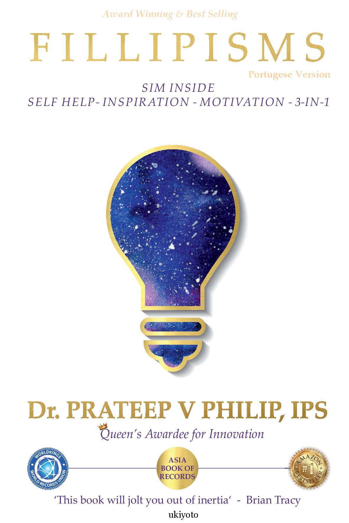 'Incrivelmente, o Dr. Prateep Philip detém o recorde das citações mais originais alguma vez escritas por uma pessoa em qualquer lingua do mundo. Este livrov o vai sacudi-lo da sua inérciaBrian Tracy: treinador motivacional, autor de 70 livrosAquindo da publicação, o Dr. Prateep V. Philip é o Comissário de Policia do Departamento de Investigação Criminal (CBCID) em Tamil Nadu, ra India Sobreviveu à primeira 'bomba humana do mundo-o assinio do antigo Primeiro- Ministro indano Shri Rajiv Gandhi A bondade humanitiria que recebeu de um cididio desconhecido após este incidente levou-o a criar o movimento Friends of the Police'. Este movimento recebeu numerosos prémios, incluindo o Queen's Award for Innovation in Police Training and Development de Sa Majestade a Rainha label 11, bem como o SKOCH Gold Award-o mais alto prémio civil instituido de forma independente na IndiaOD. Praeep V Philip foi o primeiro funcionário publico de aho nivel na India a receber a boka Gurukul Chevening Fellowship for Leadership and Excellence para estudar a globalização na London School of Economics Enquanto li esteve. concebeu uma nova disciplina global- Excenomics o primeiro estudo interdisciplinar do mundo sobre a excelencia É autor de tres livros publicados. Sendo o inovador que é, criou também um proceso de pensamento único - Equilibrium Thinking'Filipins' é um exaro sempre em expansão das experiencias de vida do Dr. Pransep V Philips e um subproduto do seu pensamento de QE