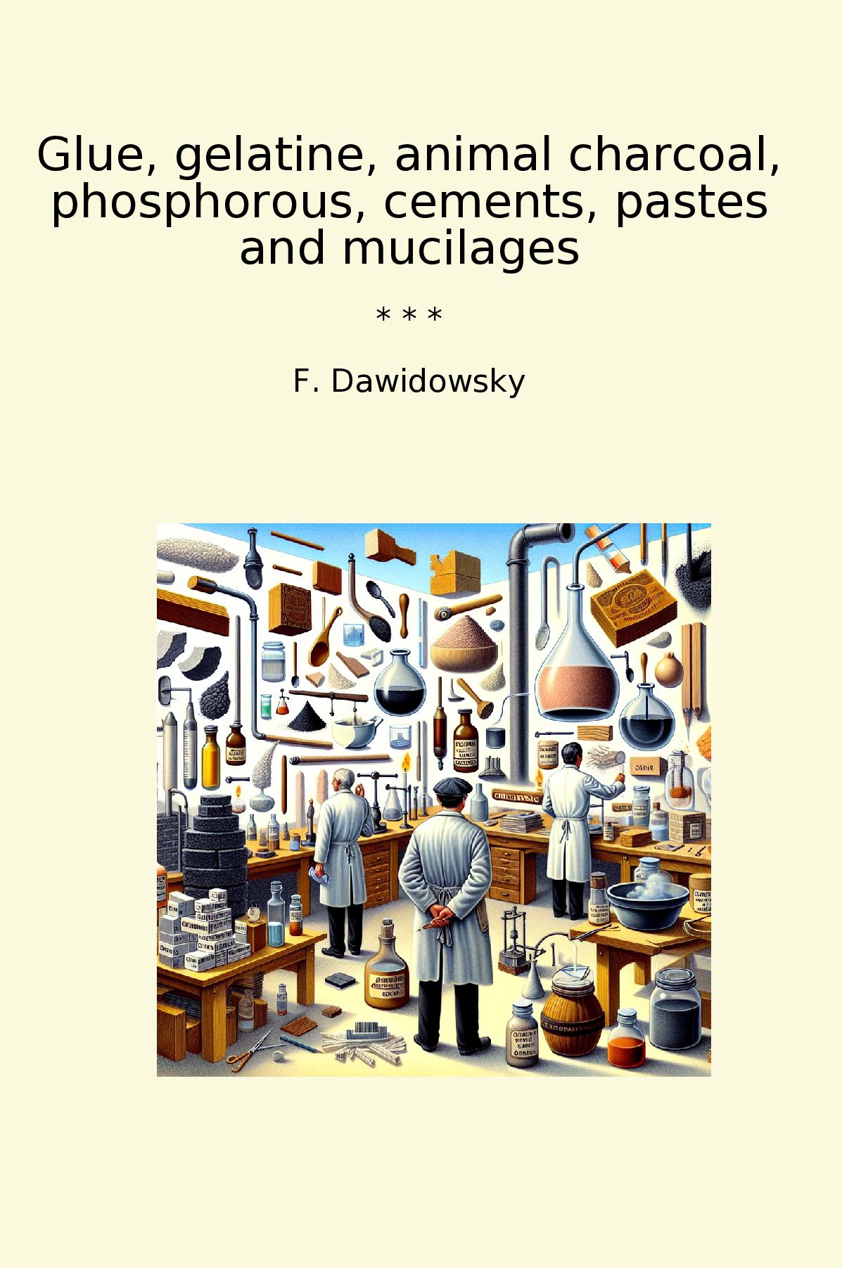Glue, Gelatine, Animal Charcoal, Phosphorous, Cements, Pastes and Mucilages by F. Dawidowsky is a comprehensive exploration of the various adhesive materials that have played crucial roles in industry and crafts. Dawidowsky meticulously examines the components and applications of glues, gelatins, and other binding agents, providing readers with insights into their chemical properties and practical uses. The book serves as a definitive guide for professionals in fields ranging from woodworking to pharmaceuticals, detailing the manufacturing processes and the significance of these materials in their respective industries. Additionally, it highlights the historical context of these substances, revealing how advancements in chemistry have transformed traditional methods. Dawidowsky’s work stands out for its clarity and attention to detail, making complex topics accessible to both experts and amateurs alike. This classic text remains a valuable resource for anyone interested in the science and application of adhesives.
