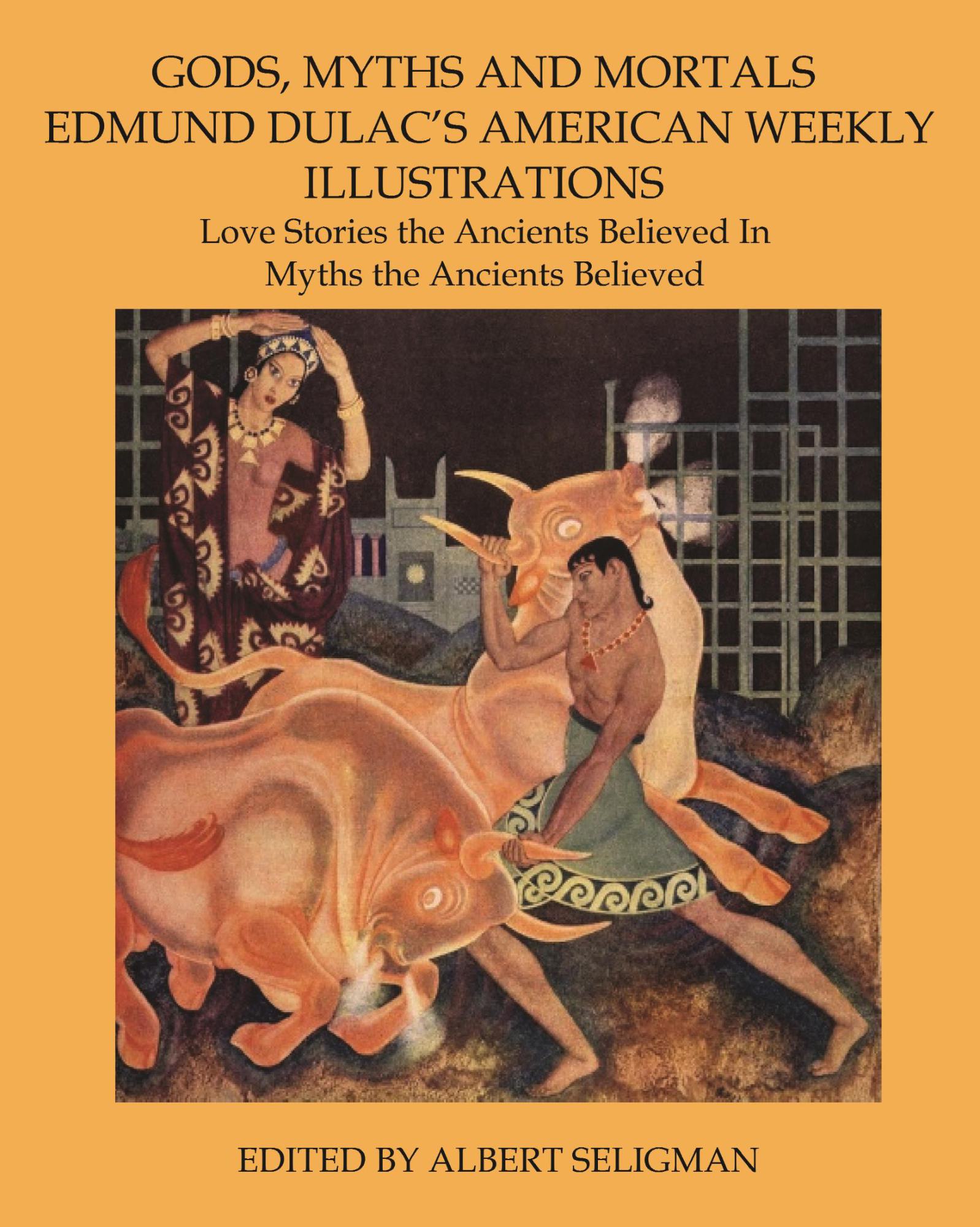 The two series featured here are the 1931 Love Stories the Ancients Believed In and the 1933 Myths the Ancients Believed. For ‘Love Stories’, Dulac painted the lovers at the moment of their highest drama, according to the interpretation from Ovid’s tales. They were republished in Good Housekeeping magazine and later as book by Hugh Williamson Ross titled Gods and Mortals in Love published by Country Life Books in 1936. It was so popular that Dulac quickly followed up with ‘Myths’. Both are painted in his high art deco tableau style, with the characters frozen in the act. This is the first republishing since then.