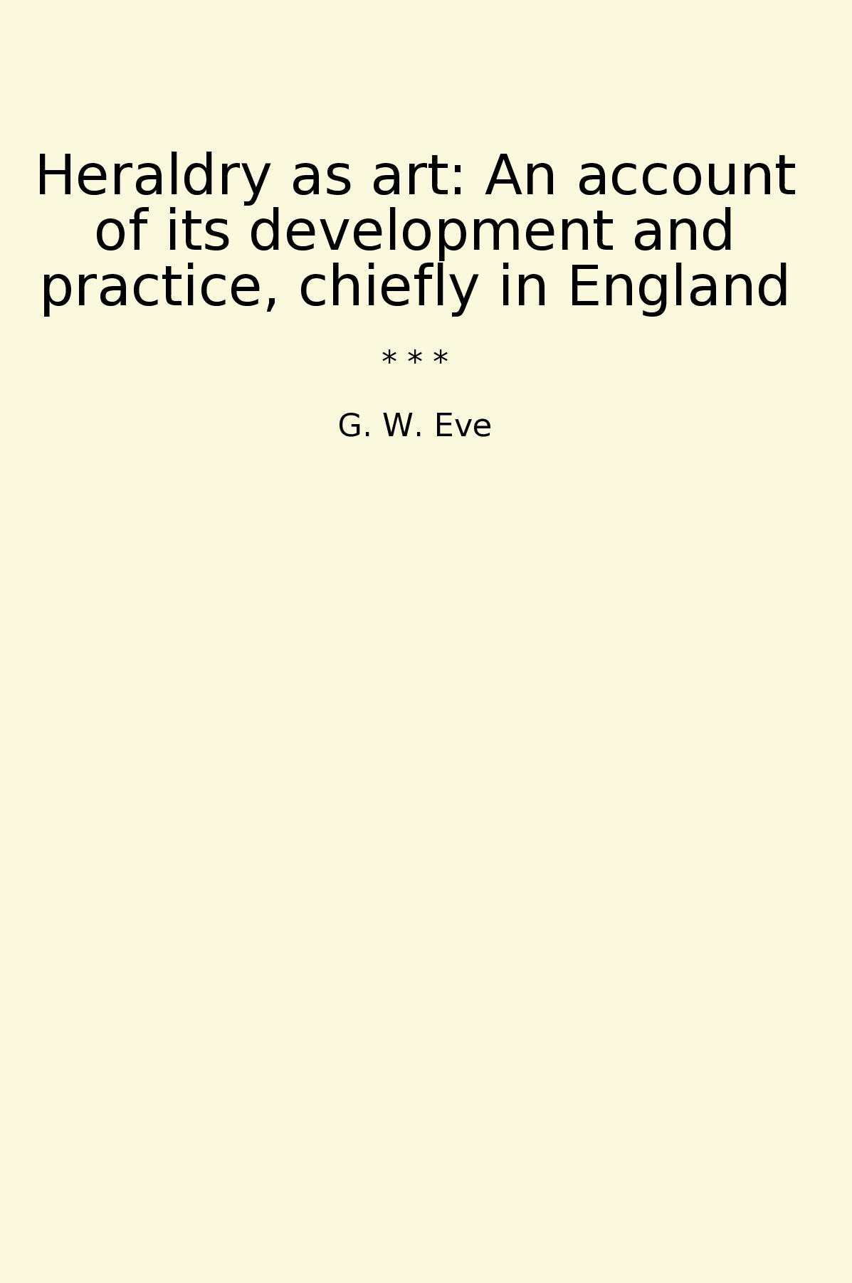 'Heraldry as Art' by G. W. Eve is a comprehensive and detailed account of the development and practice of heraldry, with a particular focus on its history in England. This classic book, written by a renowned author and writer, provides a thorough exploration of the art form, from its origins in medieval times to its significance in the present day.Eve delves into the symbolism and meaning behind the various elements of heraldry, including coats of arms, crests, and badges. He examines the ways in which heraldry has evolved over time, reflecting changing social and cultural attitudes. Drawing on his extensive research and expertise, Eve offers a wealth of information on the rules and conventions of heraldry, as well as the techniques and materials used in its creation.Furthermore, 'Heraldry as Art' features numerous illustrations and examples to aid in the understanding of the subject, making it accessible to both enthusiasts and scholars alike. This book is an invaluable resource for anyone interested in the history and practice of heraldry, as well as its enduring artistic and cultural significance.