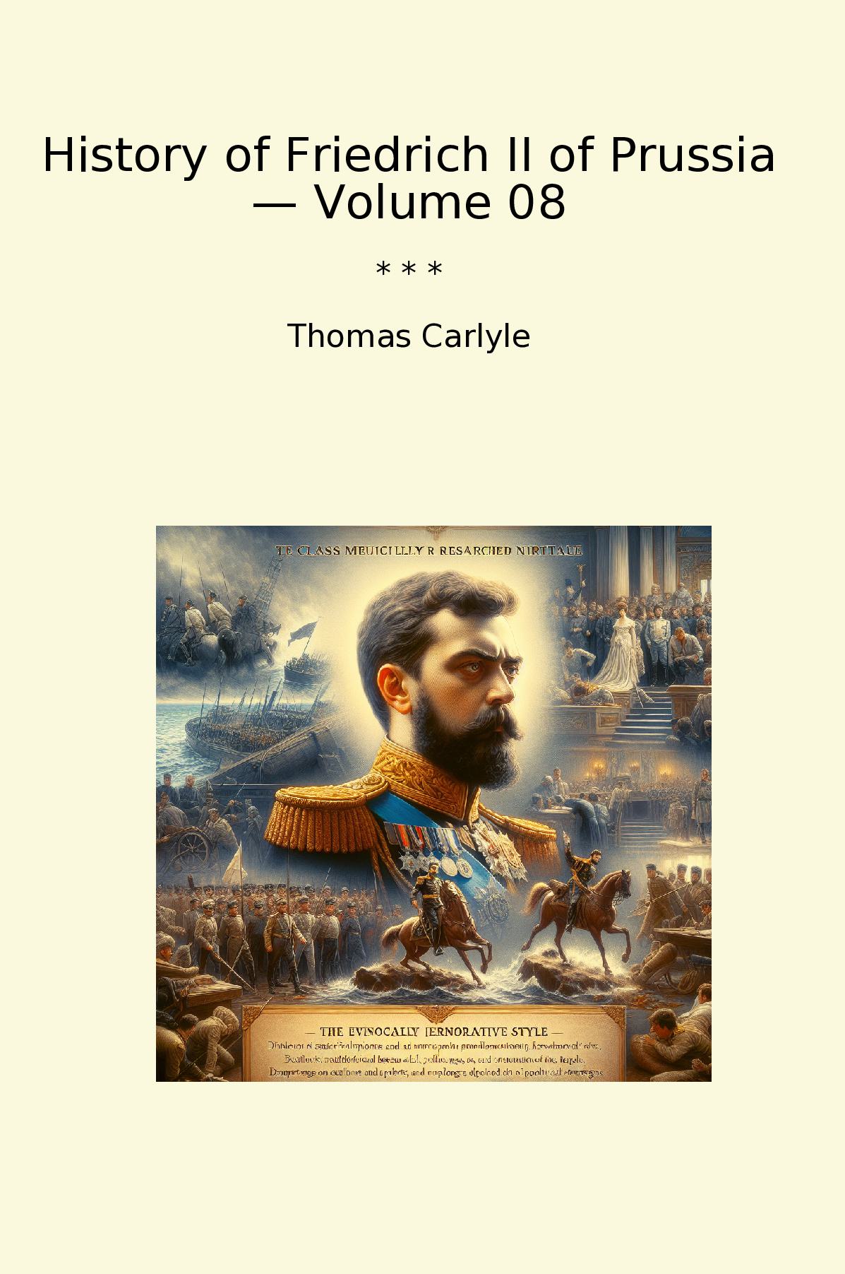 History of Friedrich II of Prussia — Volume 08 by Thomas Carlyle is a pivotal installment in his monumental work chronicling the life and reign of Frederick the Great, King of Prussia. Published in the 19th century, Carlyle's narrative style combines meticulous research with vivid storytelling, immersing readers in the political and military challenges faced by Frederick during a transformative period in European history. This volume delves into key events of the Seven Years’ War and Frederick’s strategic brilliance, highlighting his extraordinary leadership and the complexities of his character. Carlyle’s engaging prose captures the drama of battle, the intricacies of diplomacy, and the cultural milieu of the time. The work also reflects Carlyle's philosophical insights on power, duty, and the burdens of leadership. A classic of historiography, this volume remains essential for those interested in Prussian history and the evolution of statecraft in the modern era, showcasing Carlyle’s enduring literary legacy.